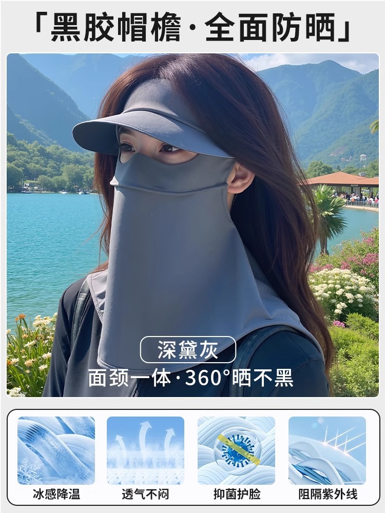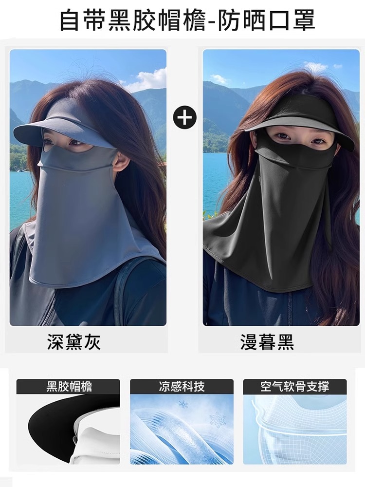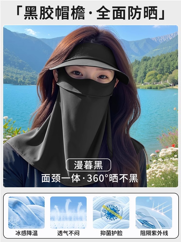 선스크린 마스크 여성의 얼굴 커버 UV 보호 목 보호 원피스 베일 운전 승마 아이스 실크 햇빛 마스크 여름