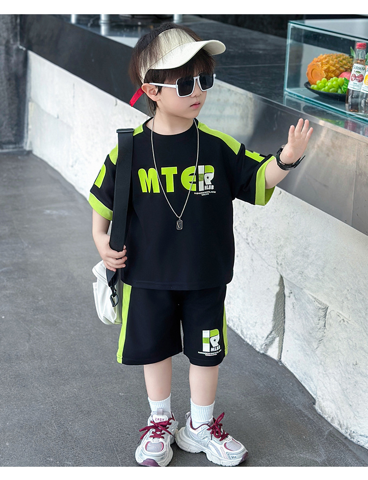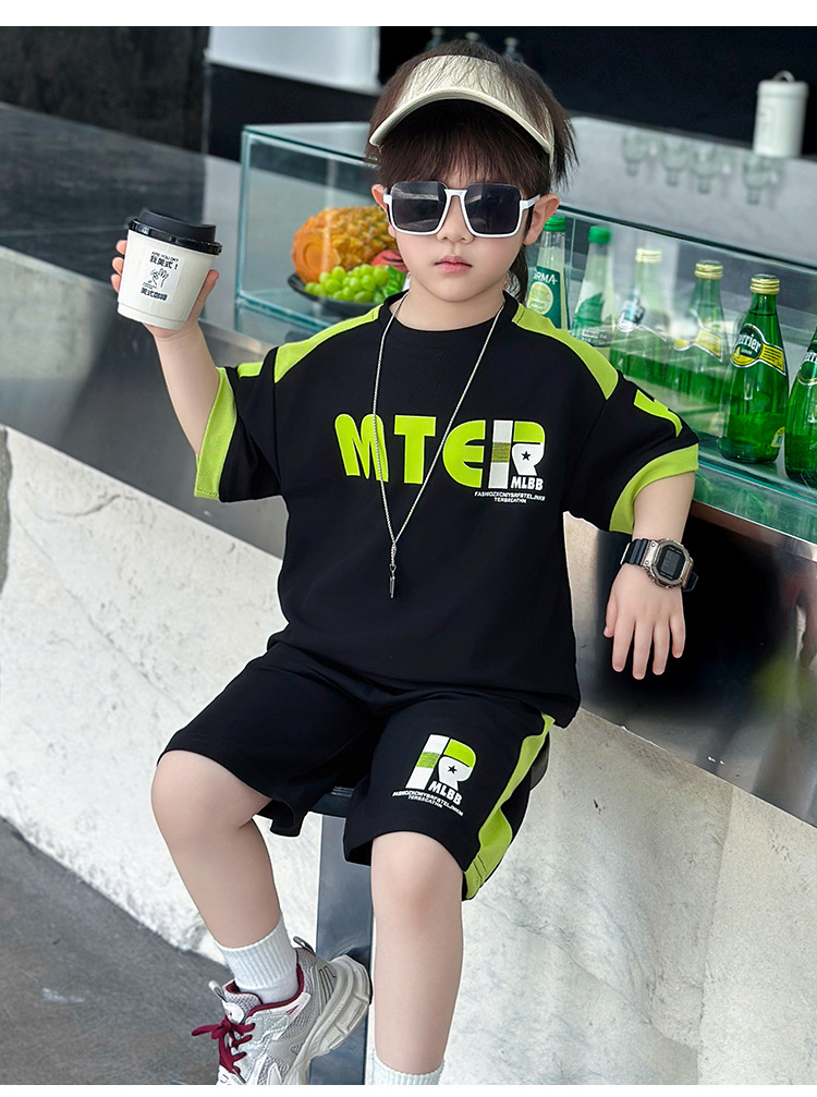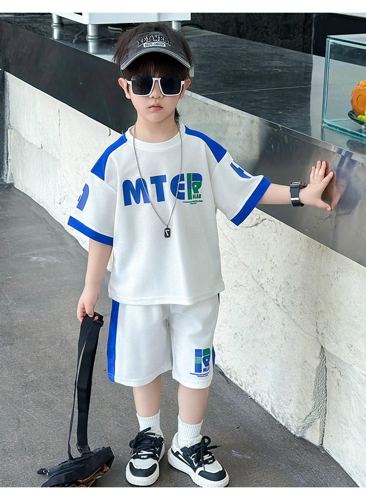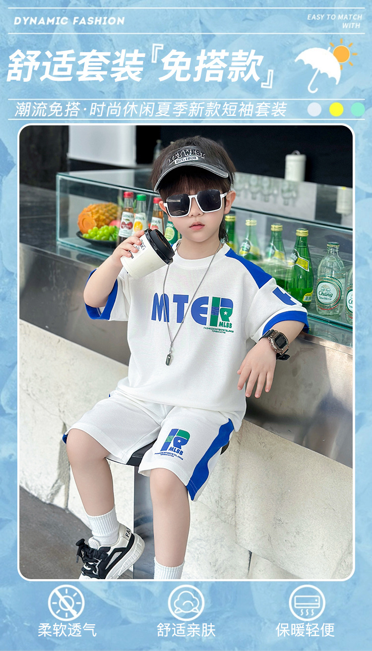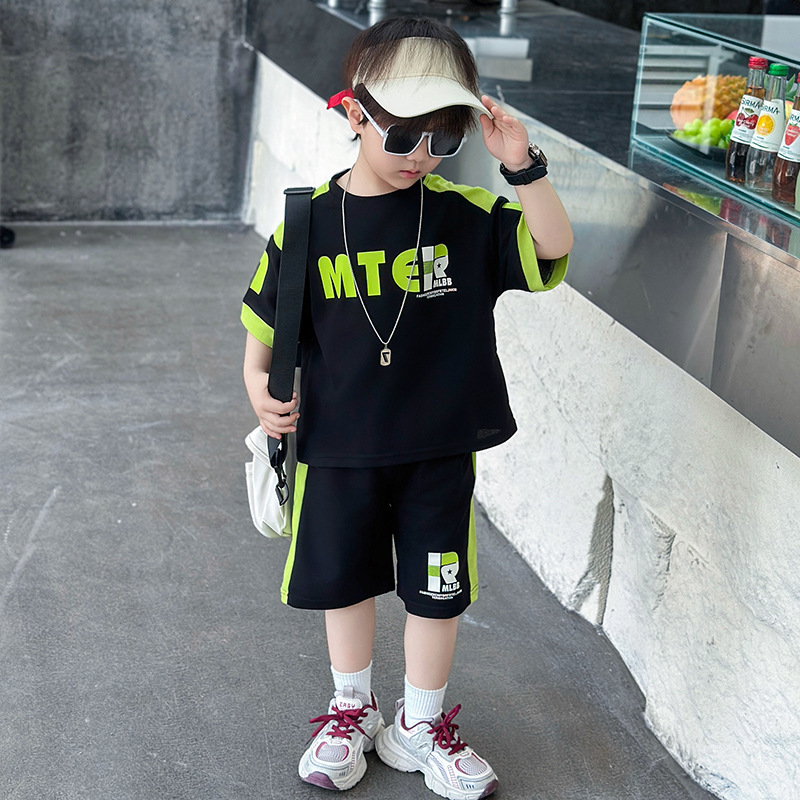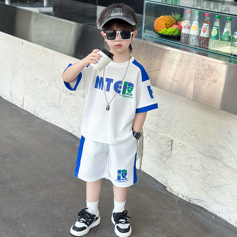 소년 반팔 티셔츠 정장 여름 얇은 2025 새로운 어린이 잘 생기고 세련되고 멋진 어린이 티셔츠 2 개스토어 가기