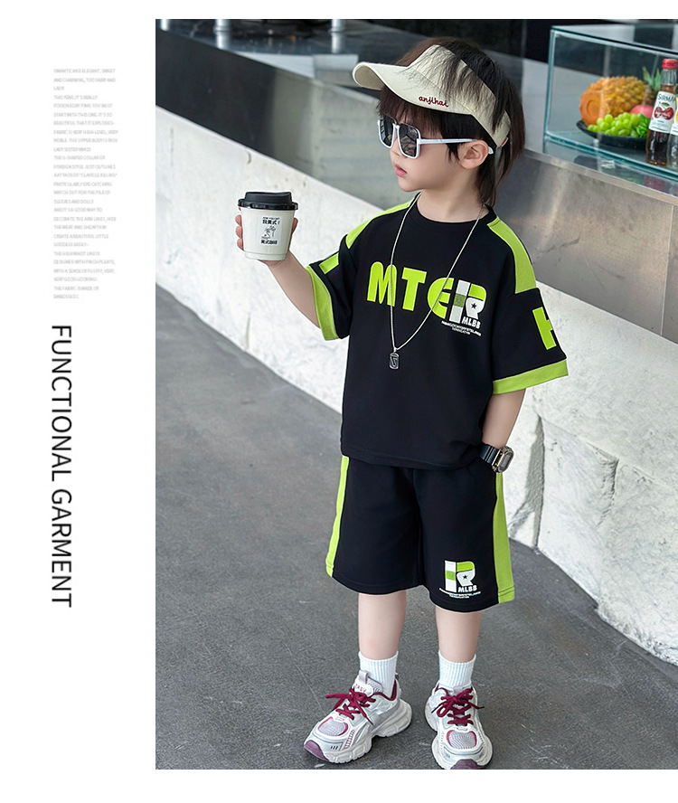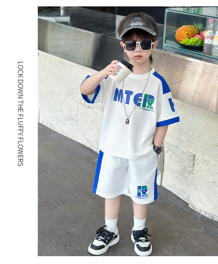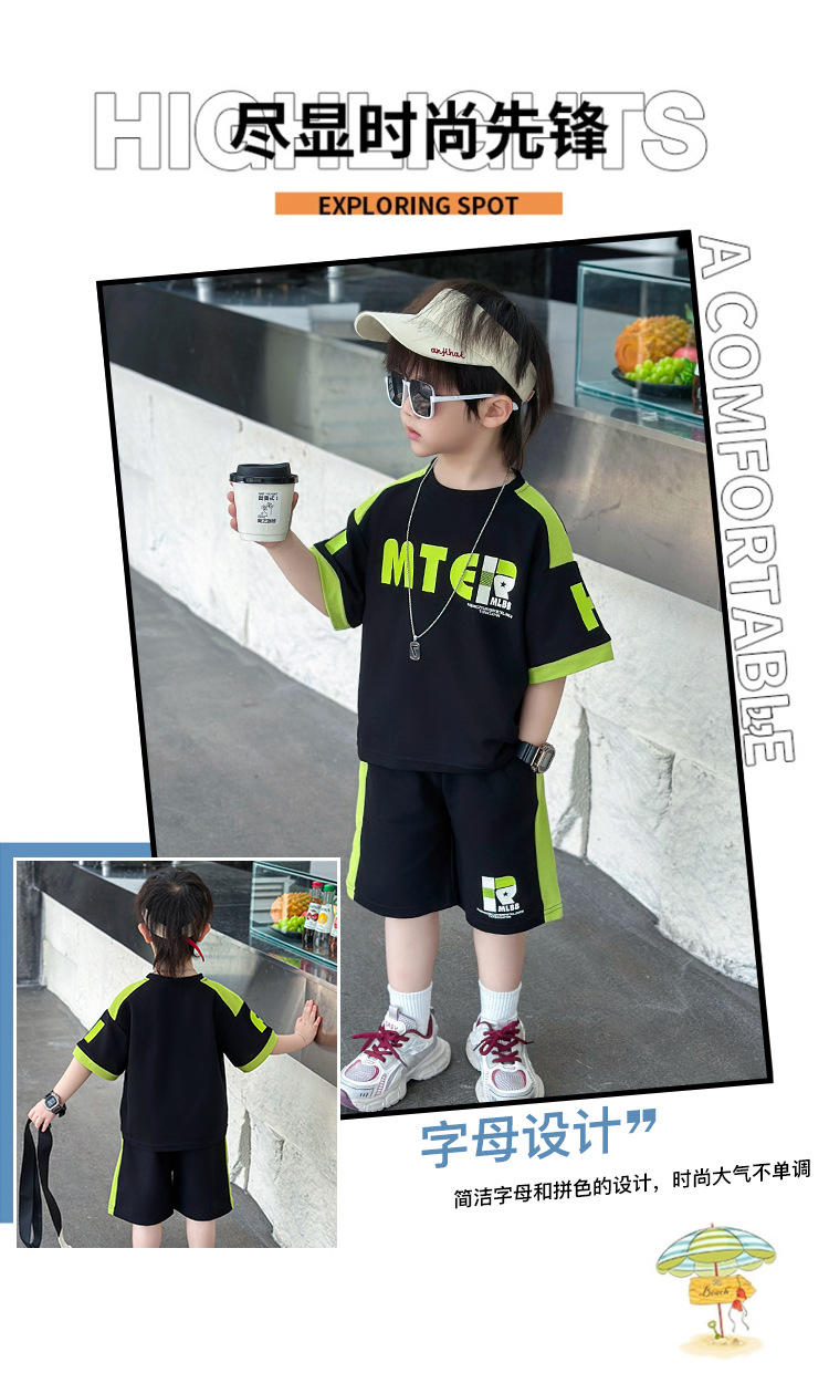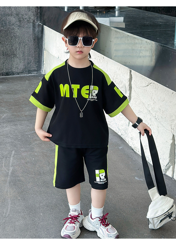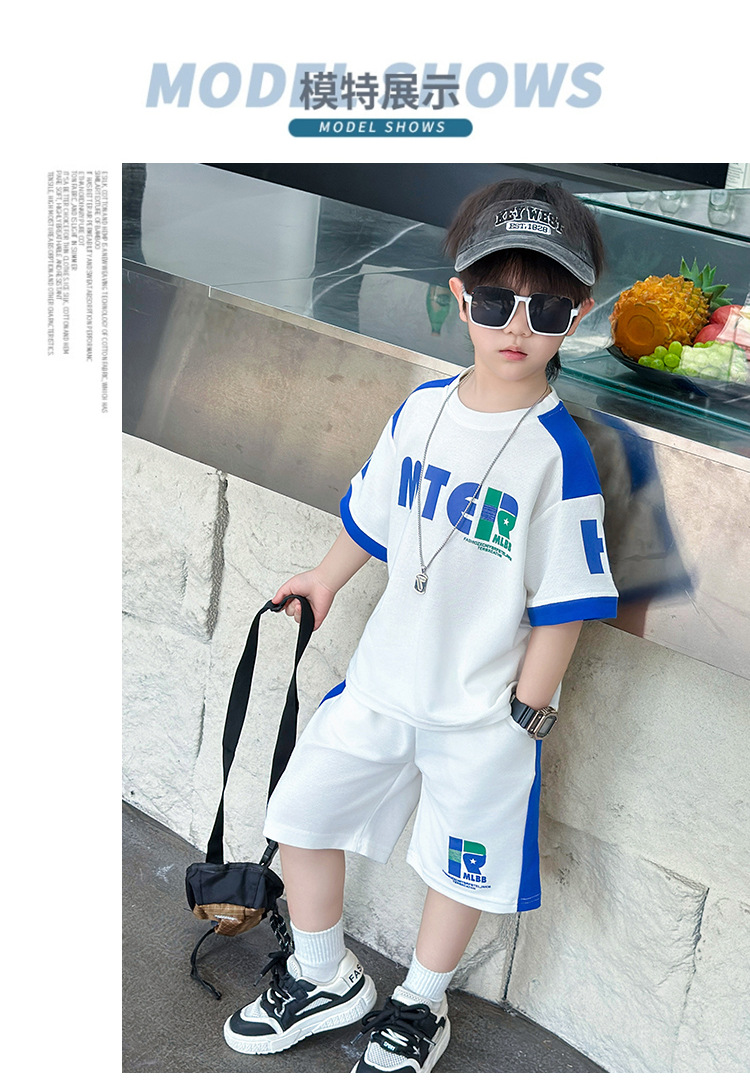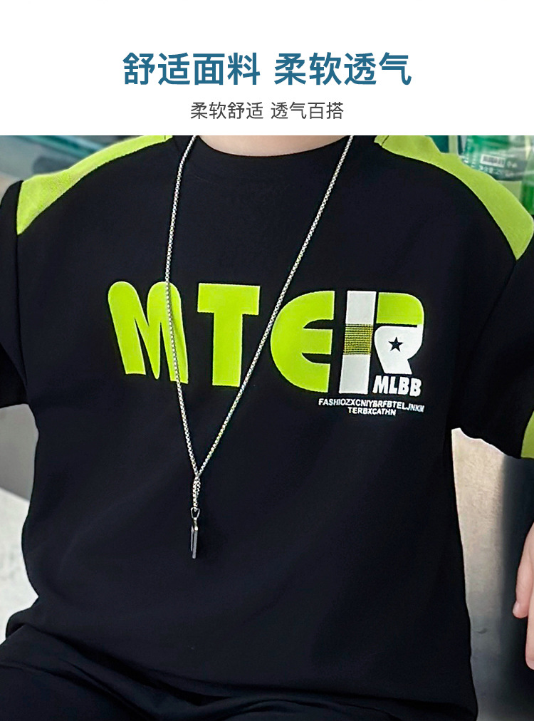 소년 반팔 티셔츠 정장 여름 얇은 2025 새로운 어린이 잘 생기고 세련되고 멋진 어린이 티셔츠 2 개스토어 가기
