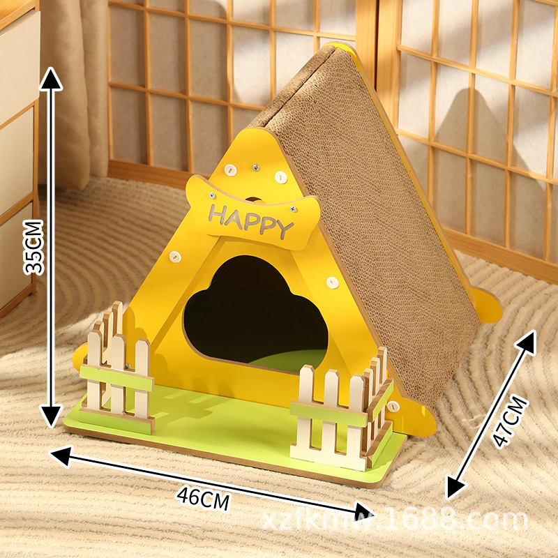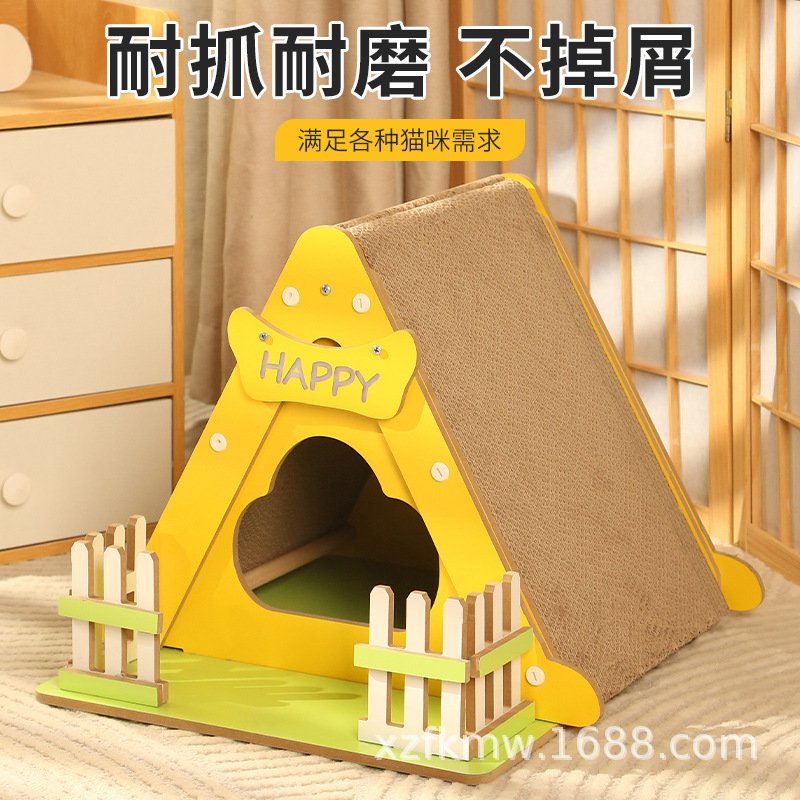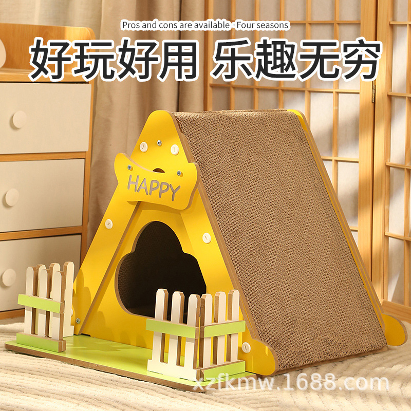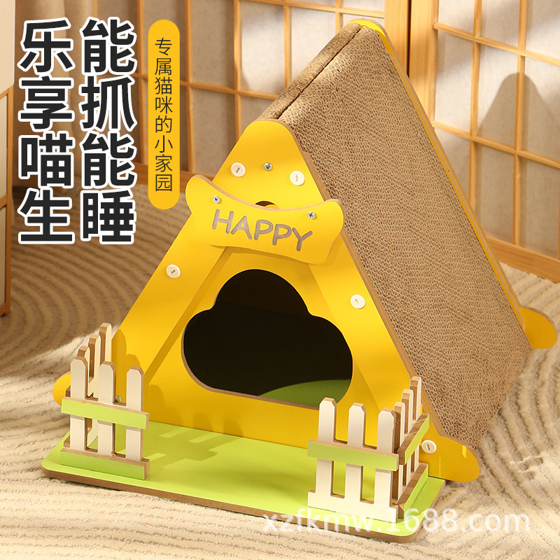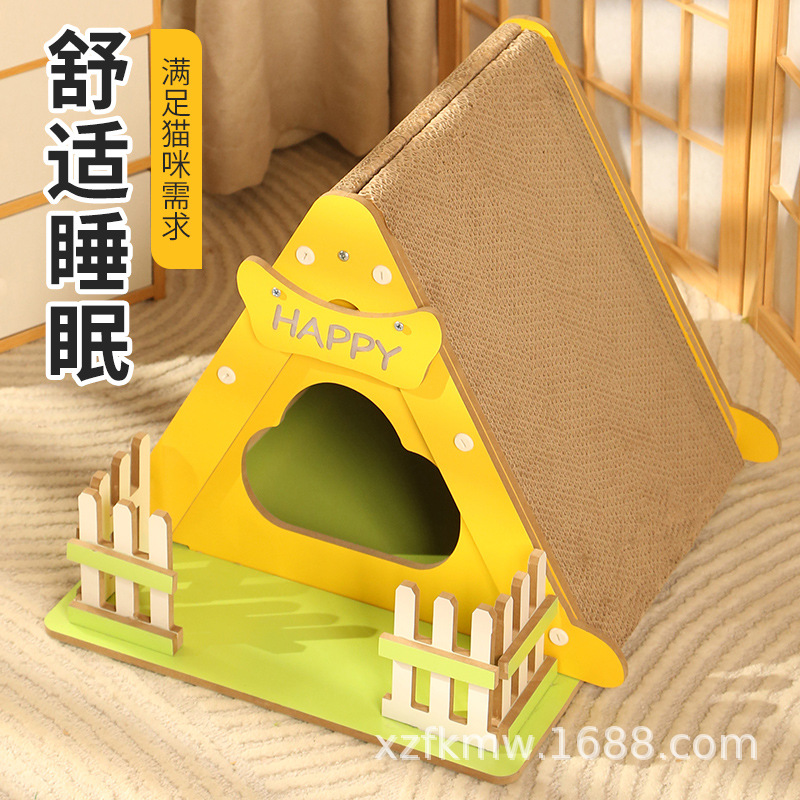 고양이 스크래치 보드 만화 나무 집 양면 골판지 고양이 스크래치 보드 귀여운 고양이 집 연삭 발톱 보드 삼각형 고양이 장난감스토어 가기