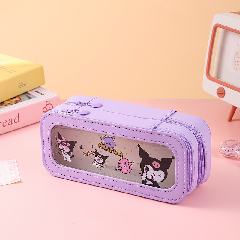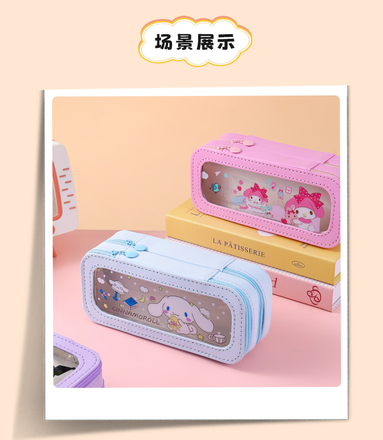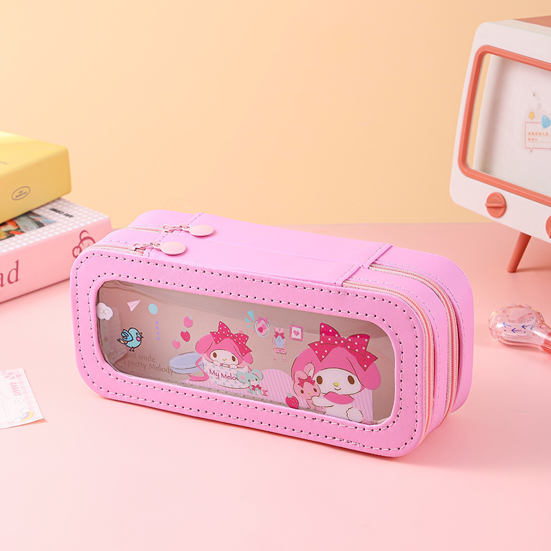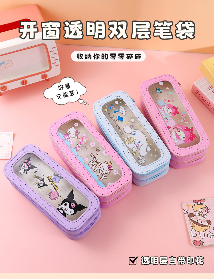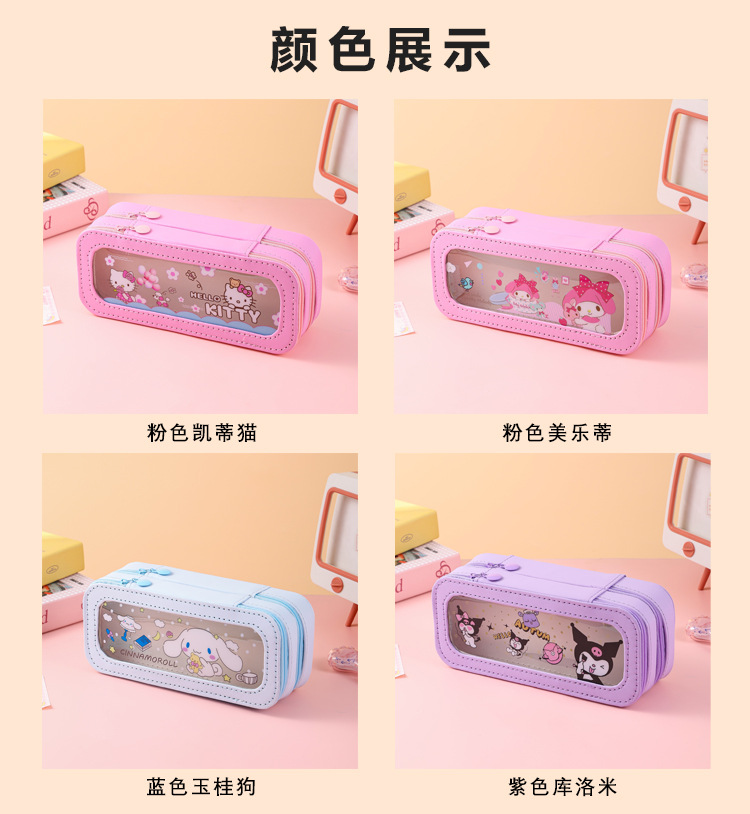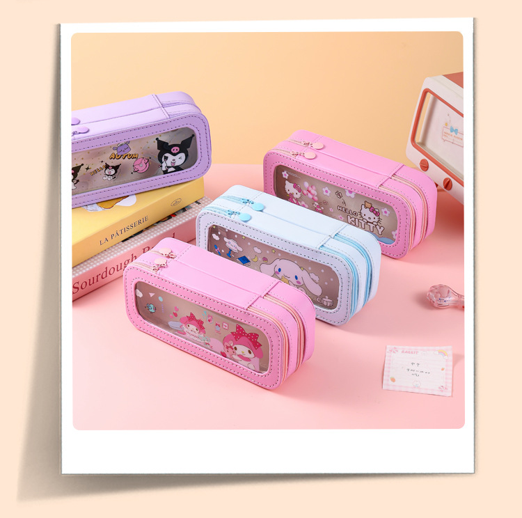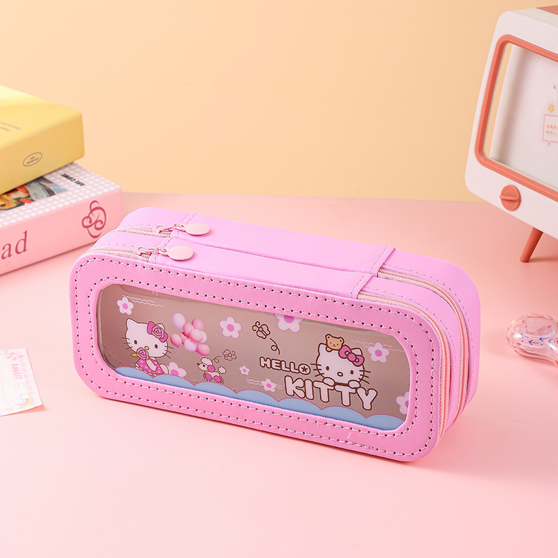• 핑크 헬로 키티-창 투명 펜 케이스
