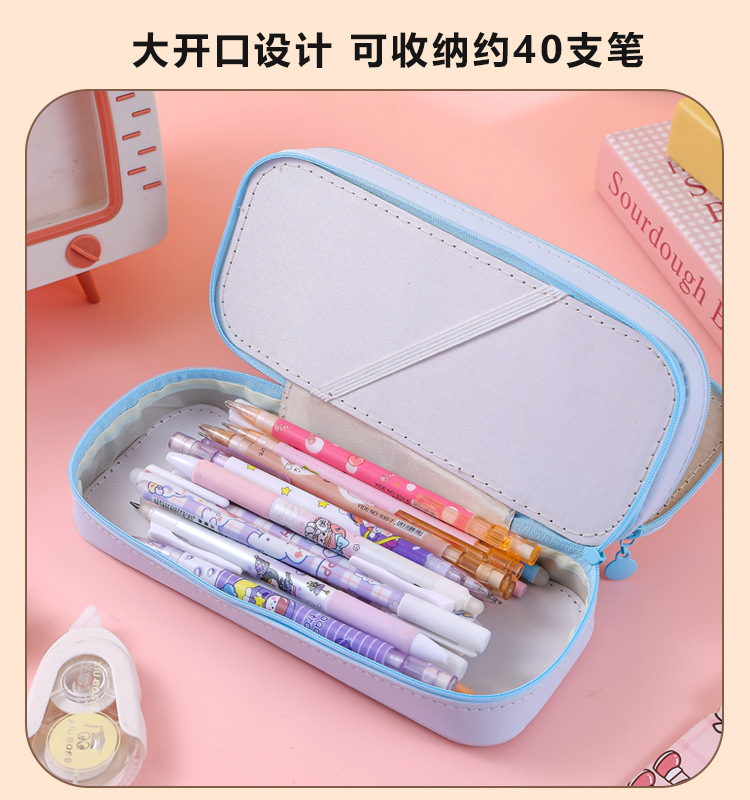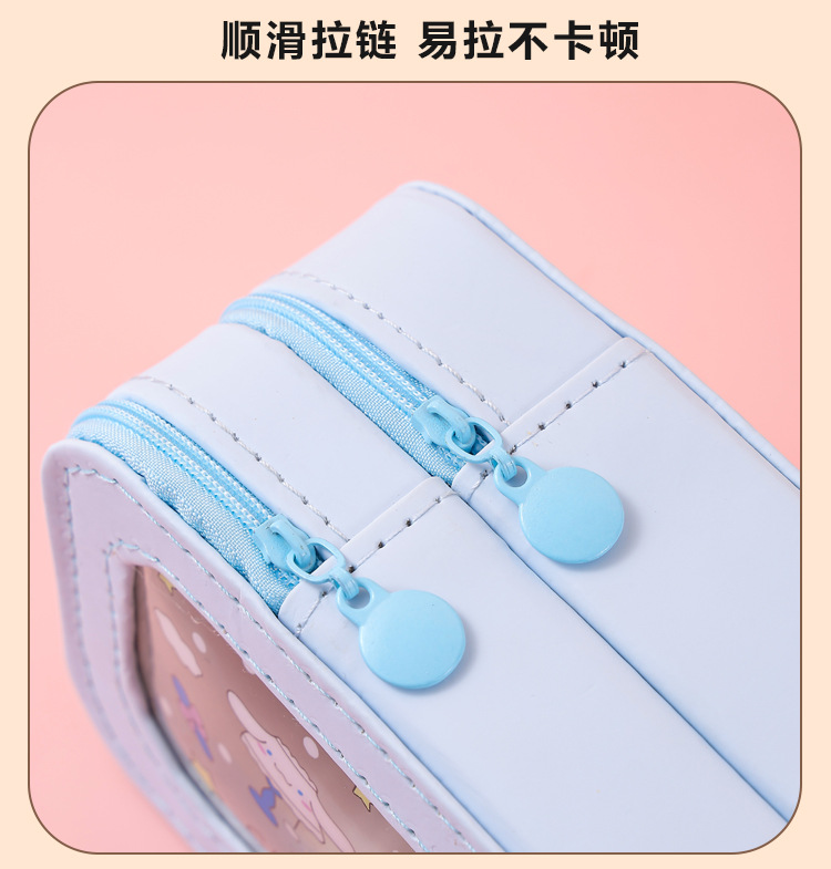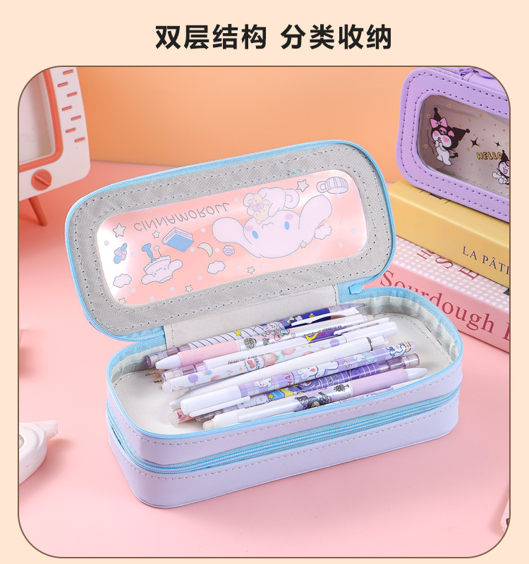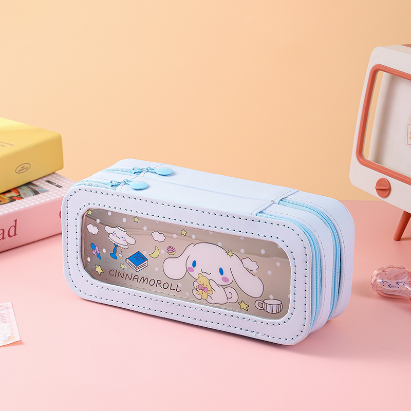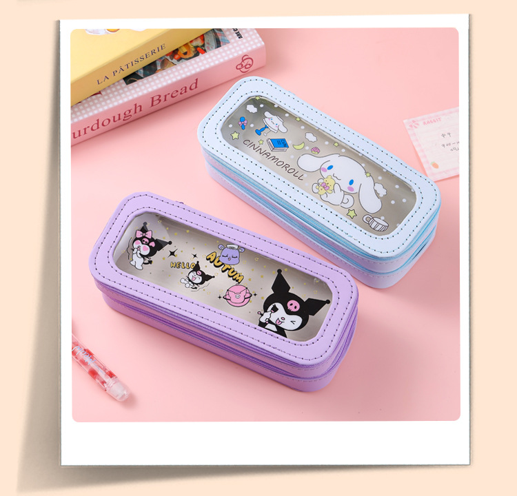 창문이 열린 투명 이중 문구 상자 초대형 대용량 지퍼 연필 가방 어린이와 학생을위한 문구 가방