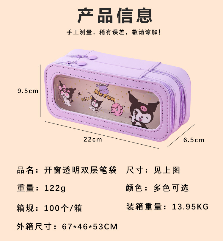 창문이 열린 투명 이중 문구 상자 초대형 대용량 지퍼 연필 가방 어린이와 학생을위한 문구 가방스토어 가기