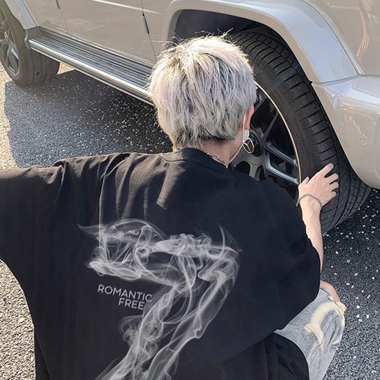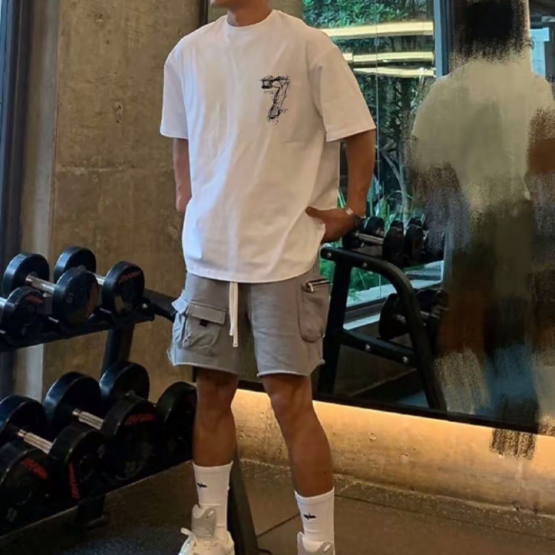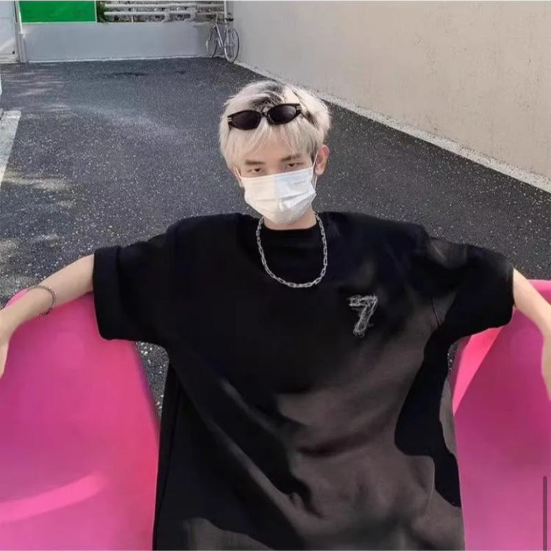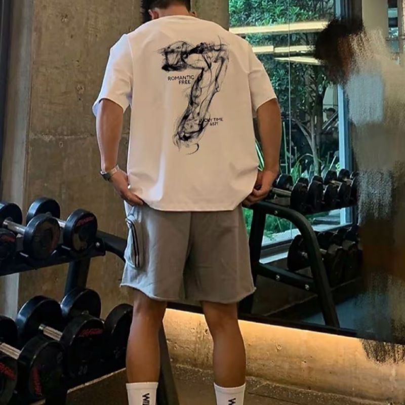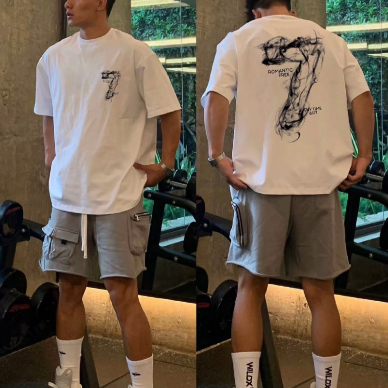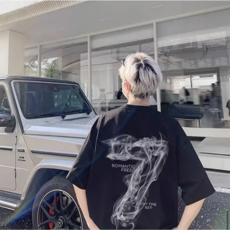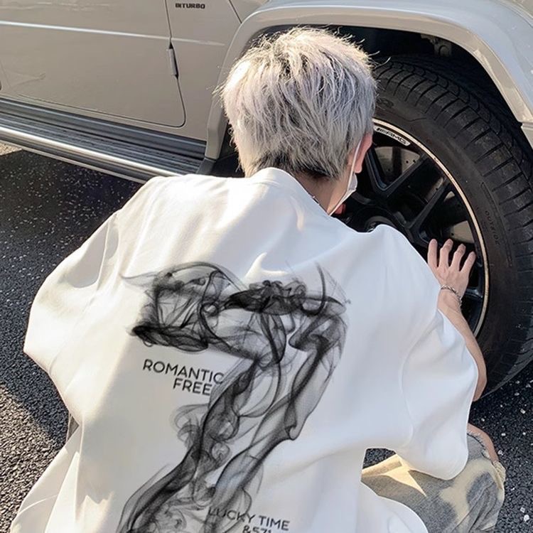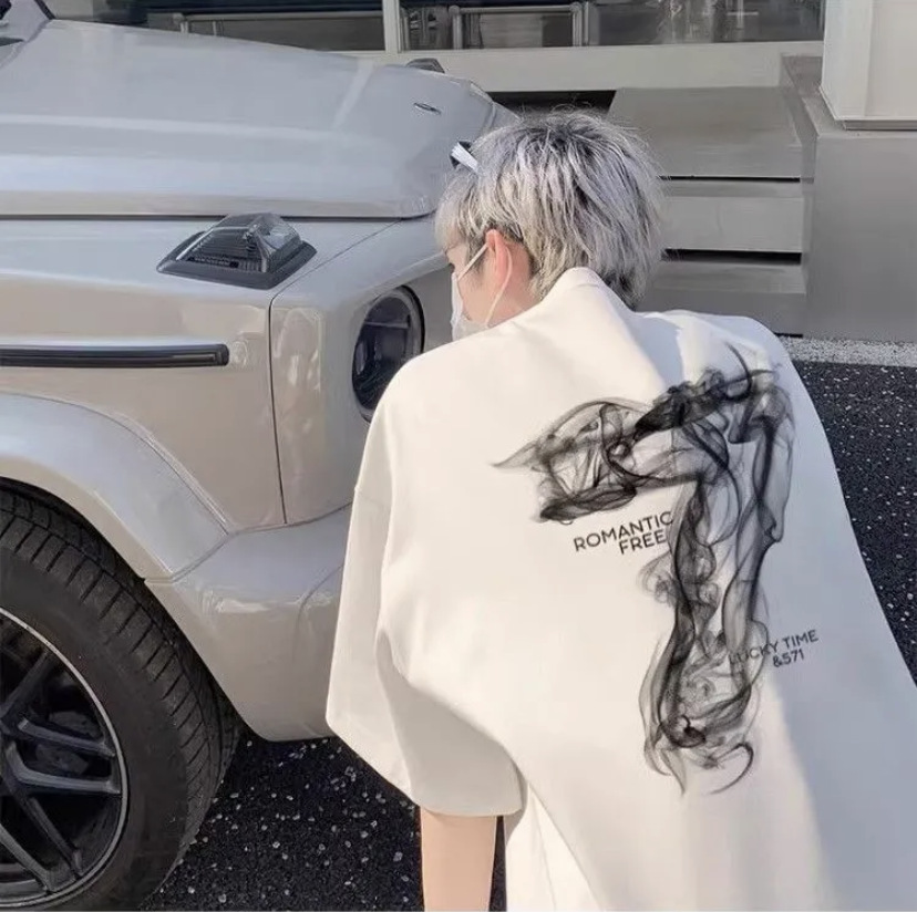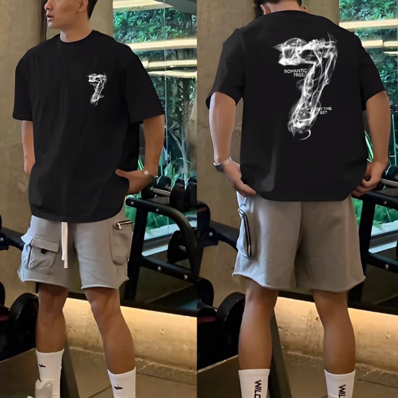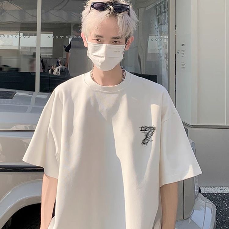 【라이트닝 스토어 인기상품】한국 스타일 트렌디 반팔 남성용 디지털 프린트 티셔츠 여름 인스타 감성 루즈핏 심플