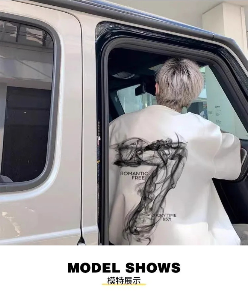 【라이트닝 스토어 인기상품】한국 스타일 트렌디 반팔 남성용 디지털 프린트 티셔츠 여름 인스타 감성 루즈핏 심플스토어 가기