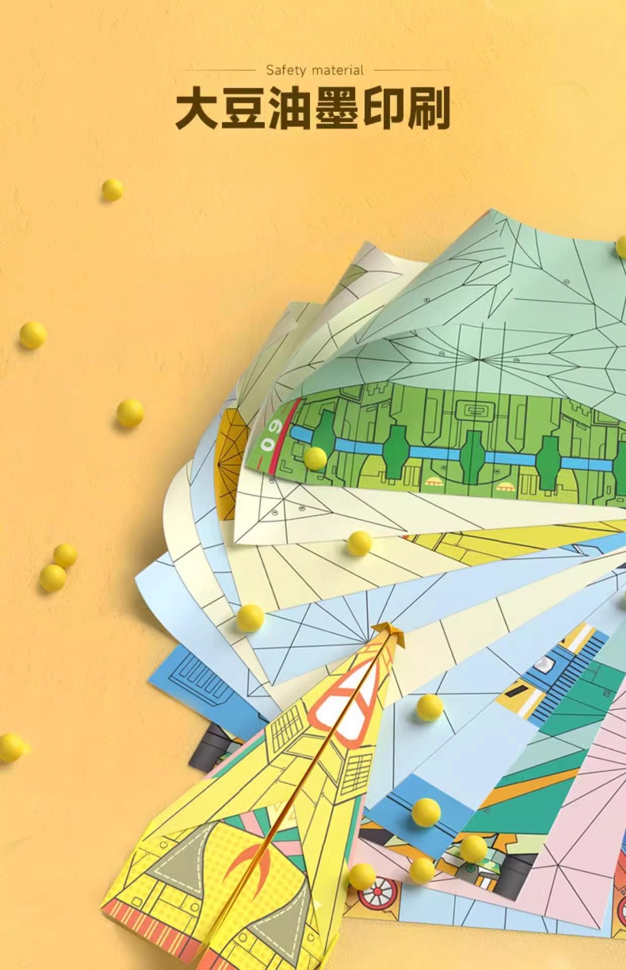 纸飞机为大豆油墨印刷,刚印刷出厂有油墨的味道是正常的,请放心玩耍。