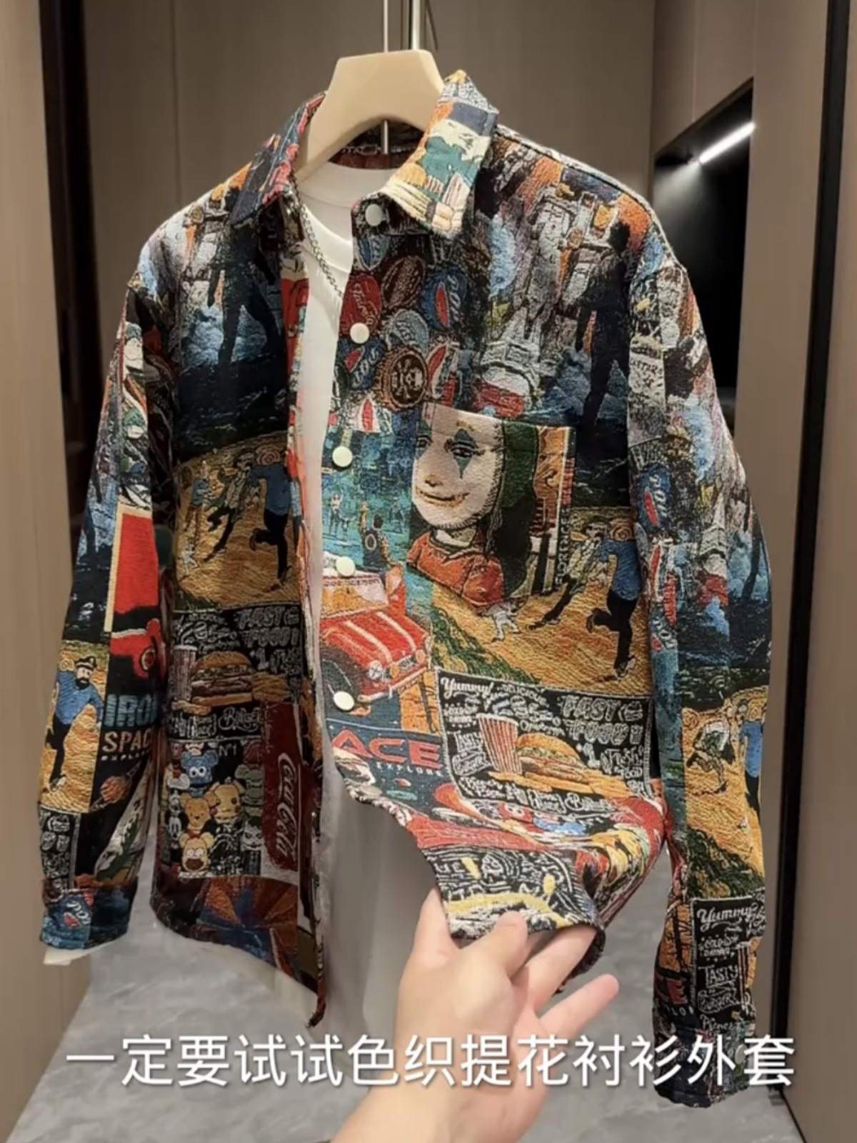 봄과 가을 새로운 남자의 유행 원사 염색 자카드 그린 셔츠 유니섹스 유행 올 매치 루즈 캐주얼 자켓스토어 가기