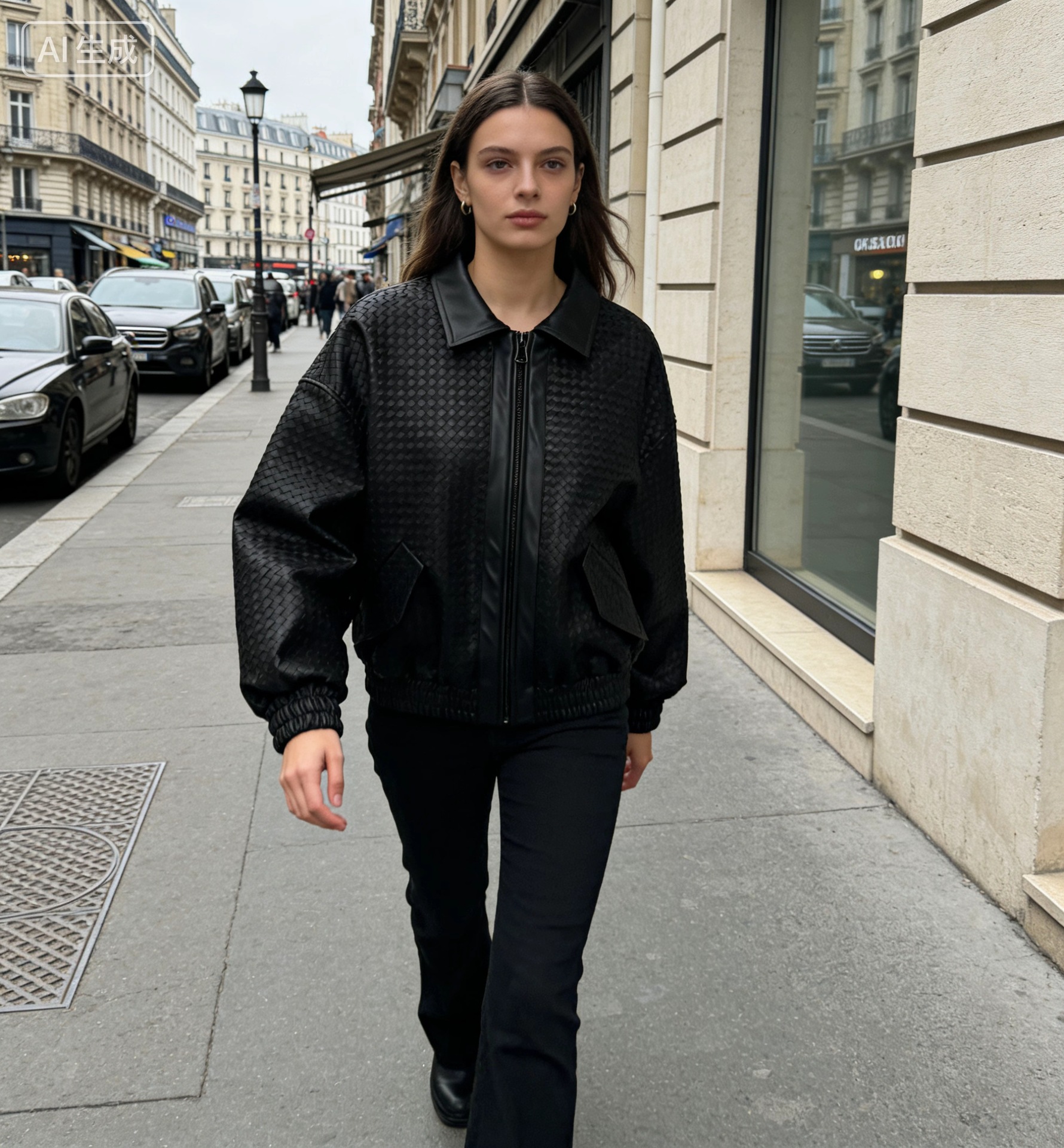 HN5152 천연 가죽 양가죽 브레이드 라펠 지퍼 스트리트 레트로 파일럿 재킷 루즈핏 여성용스토어 가기