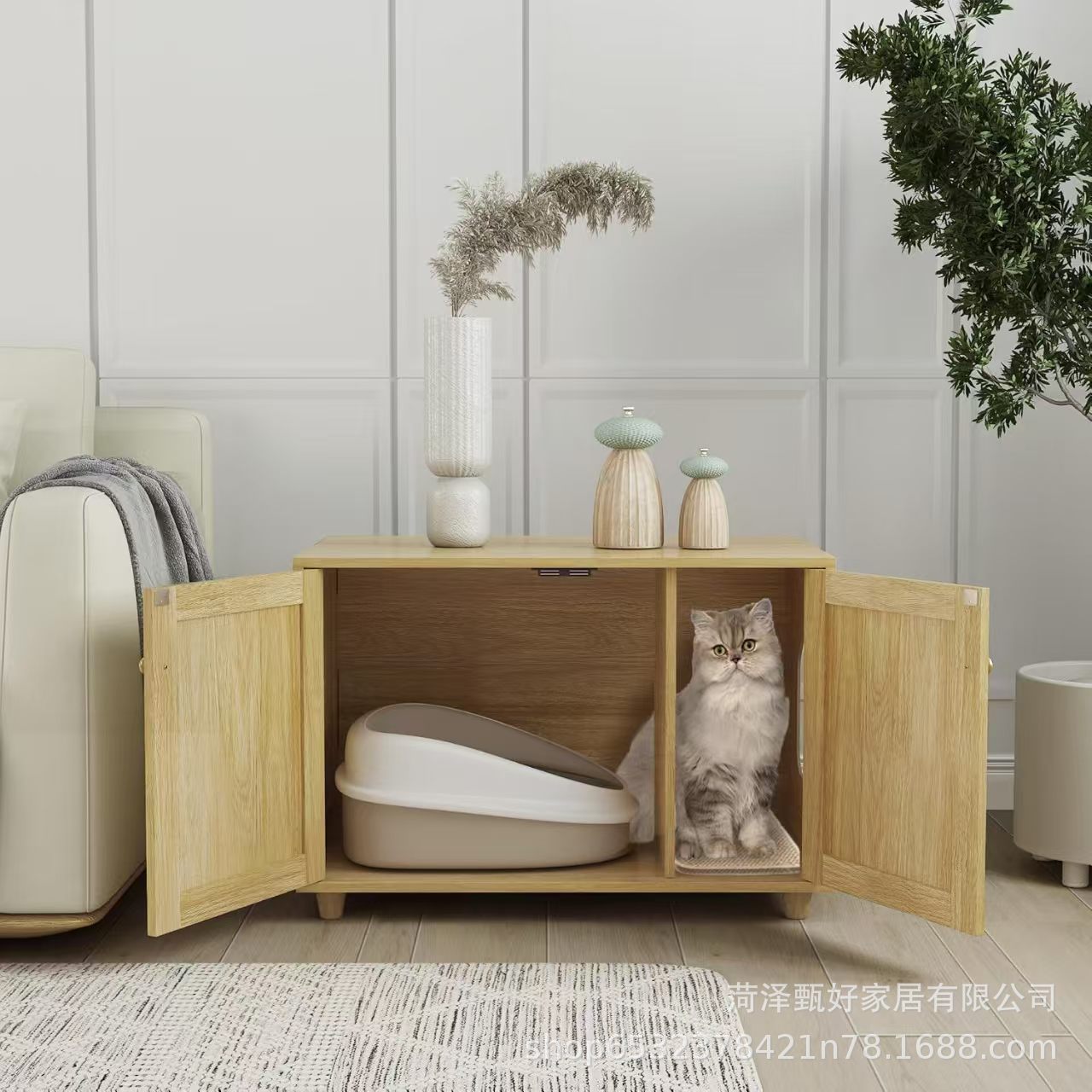 등나무로 짠 나무 애완 동물 집 간단한 숨겨진 고양이 쓰레기 상자 다목적 홈 거실 TV 캐비닛 보관 캐비닛