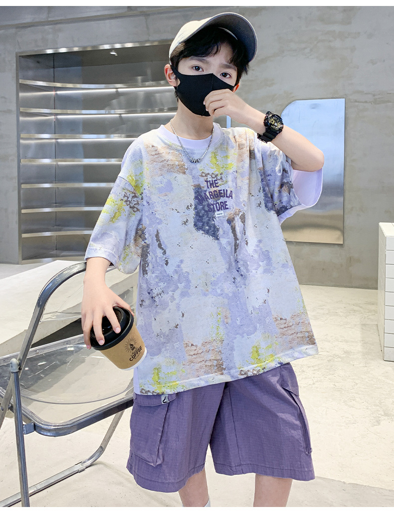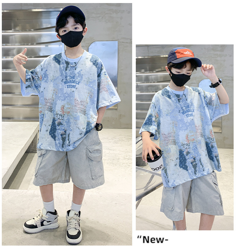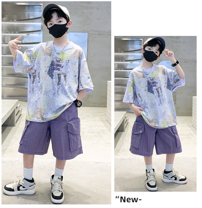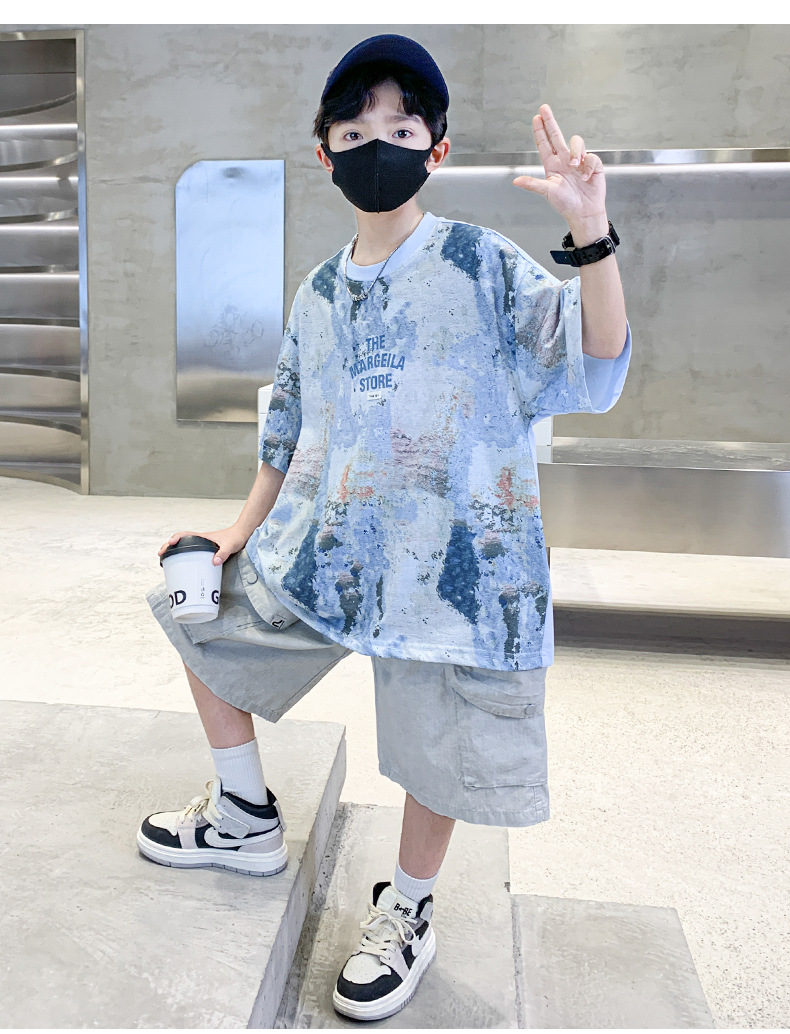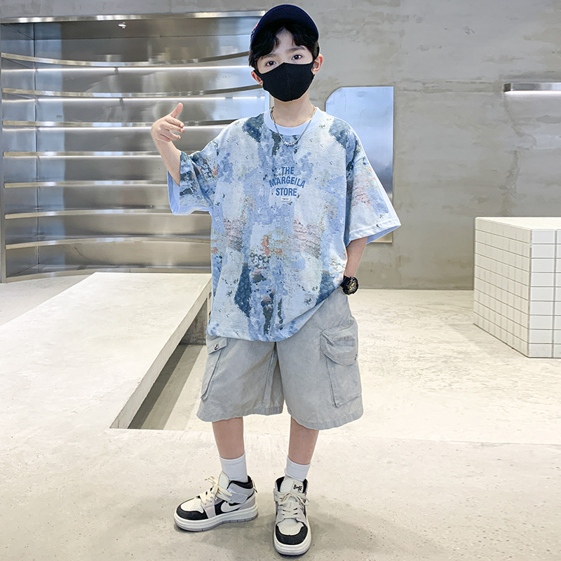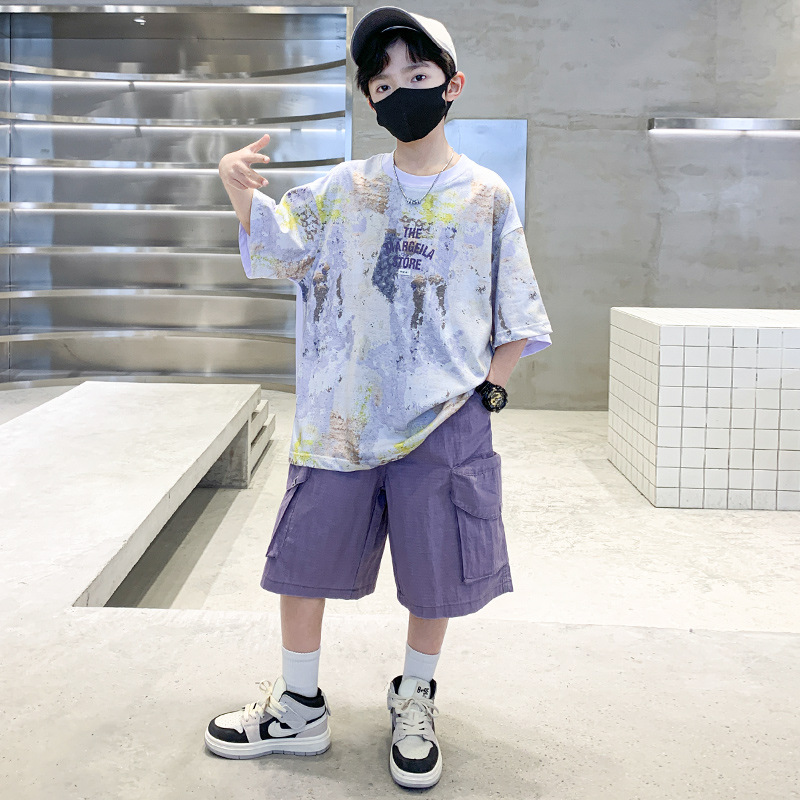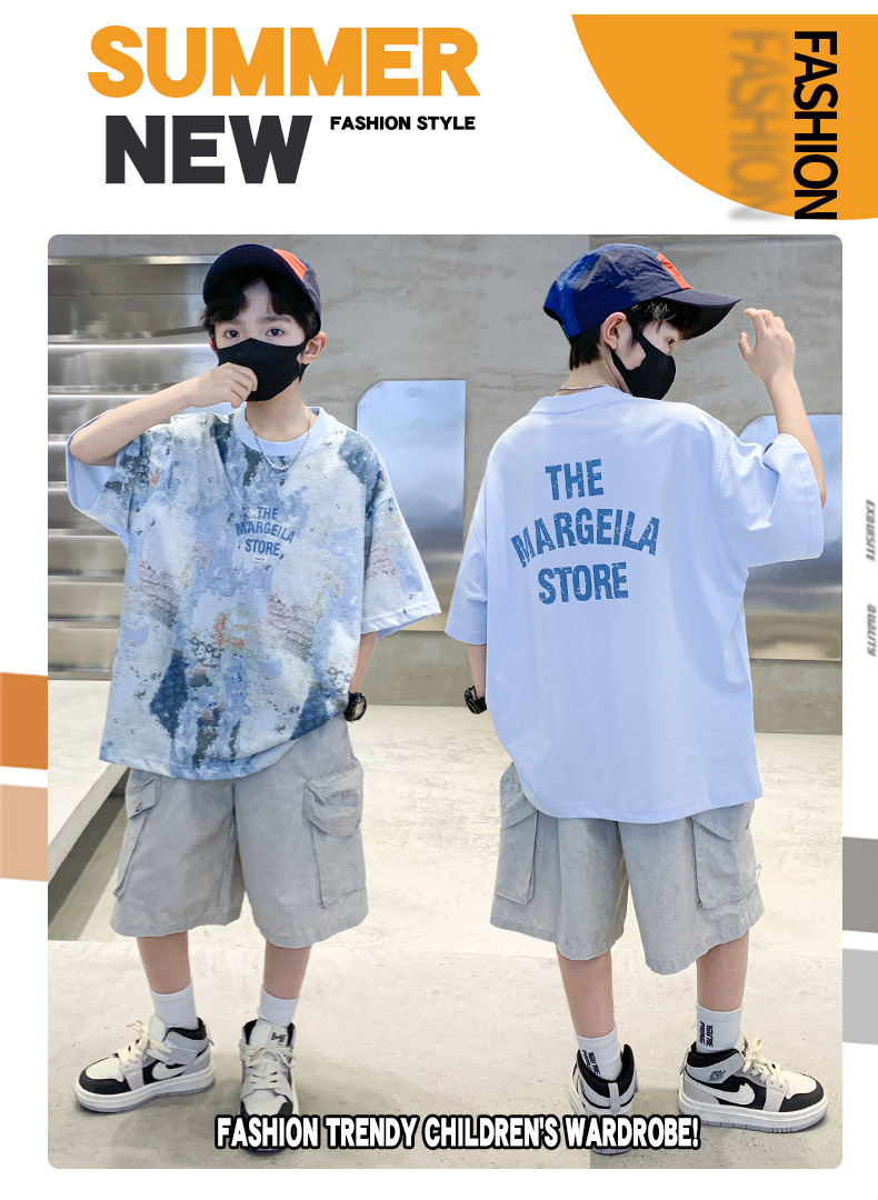 어린이 착용 소년 여름 착용 세트 2025 새로운 여름 얇은 여름 스포츠 소년의 큰 소년의 짧은 소매 멋진 유행