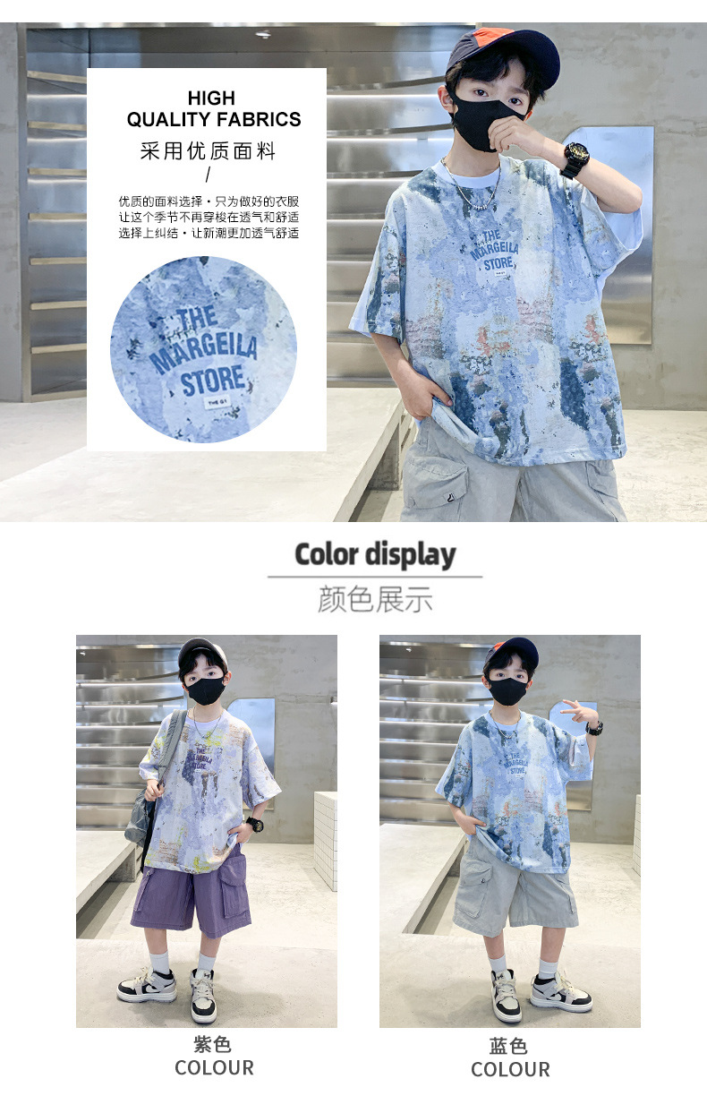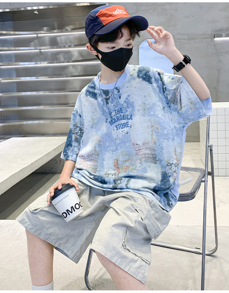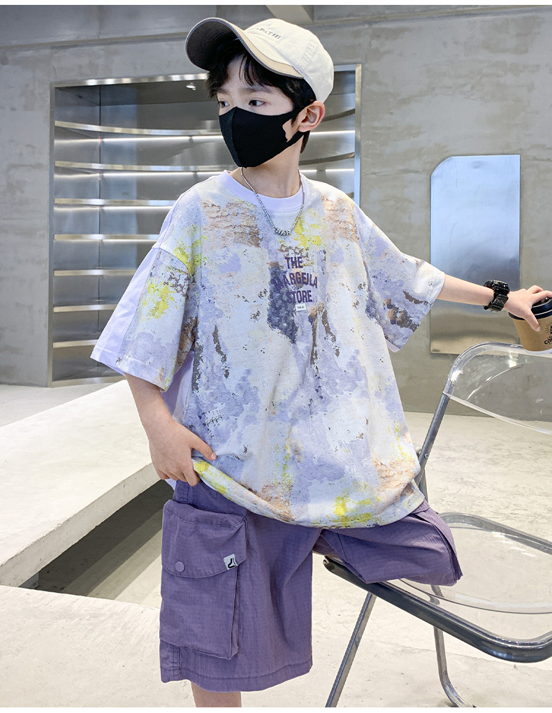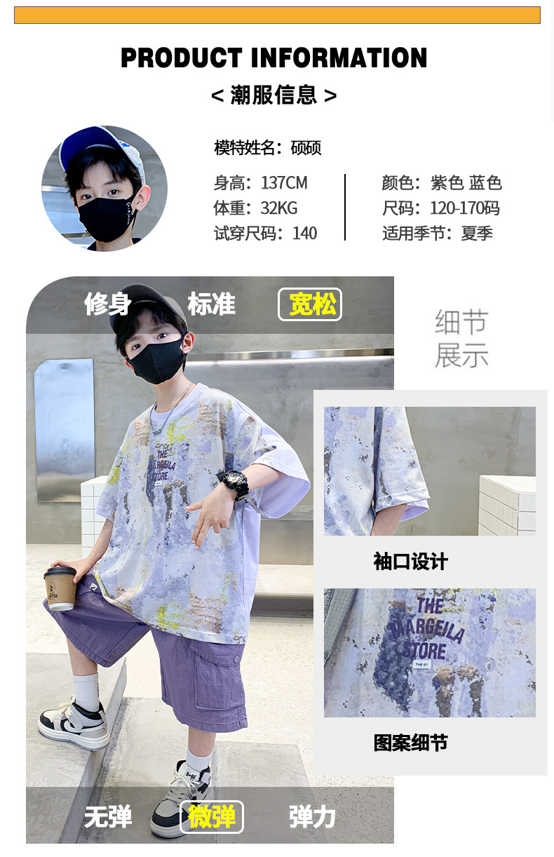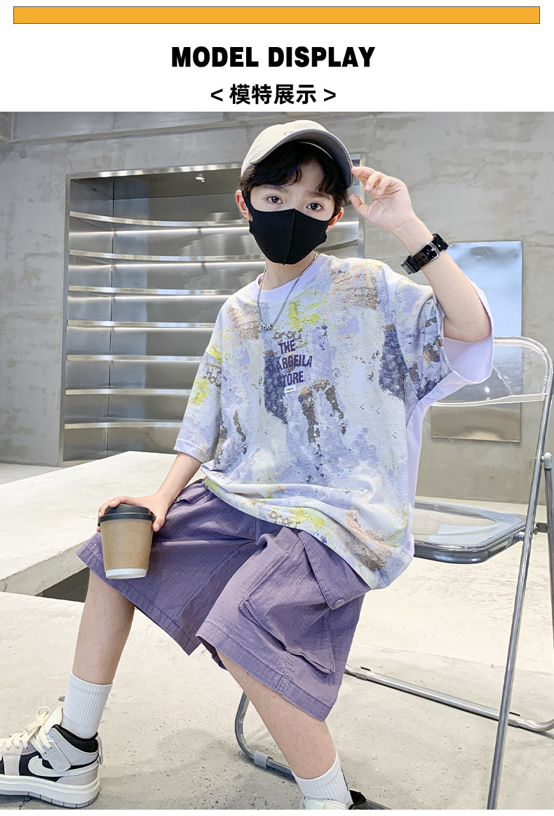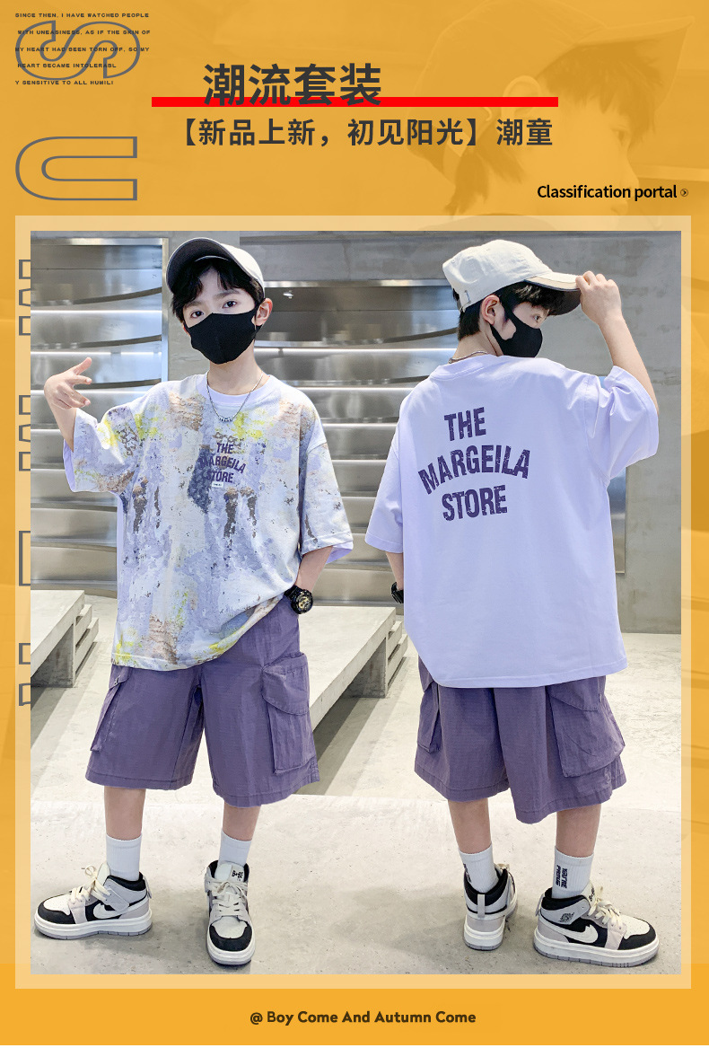 어린이 착용 소년 여름 착용 세트 2025 새로운 여름 얇은 여름 스포츠 소년의 큰 소년의 짧은 소매 멋진 유행