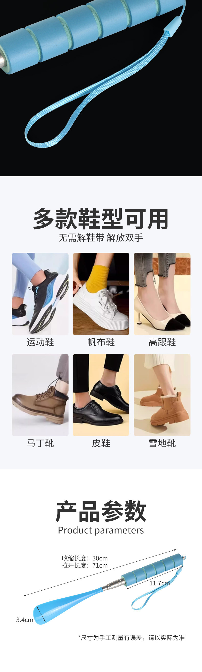 손잡이가 긴 텔레스코픽 구둣주걱, 편리한 구둣주걱, 노인과 임산부가 신발을 신을 수 있는 구둣주걱, 신발을 들어올릴 수 있는 도구, 신발 손잡이가 길어진 신발