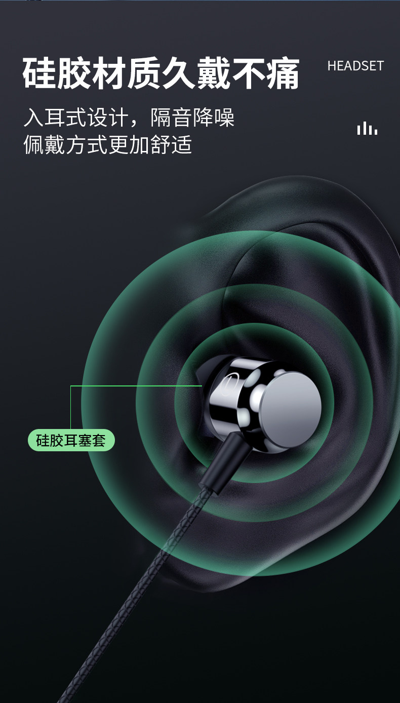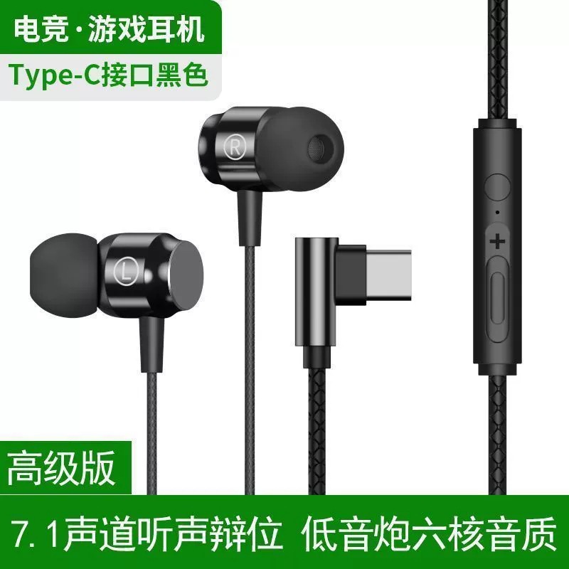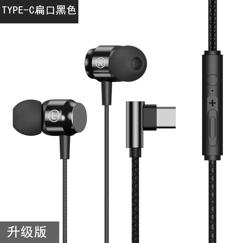 • 검정색 [Type-C 플랫 마우스] 마이크가 있는 라인 제어★슈퍼 베이스★옥타 코어 HIFI 사운드