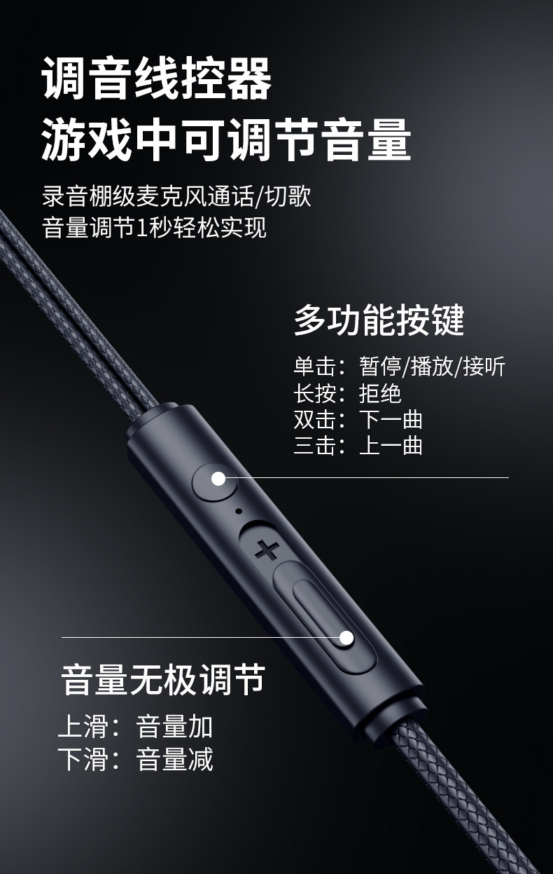 • 검정색 [3.5mm 둥근 머리] 마이크가 있는 라인 제어★슈퍼 베이스★옥타 코어 HIFI 사운드