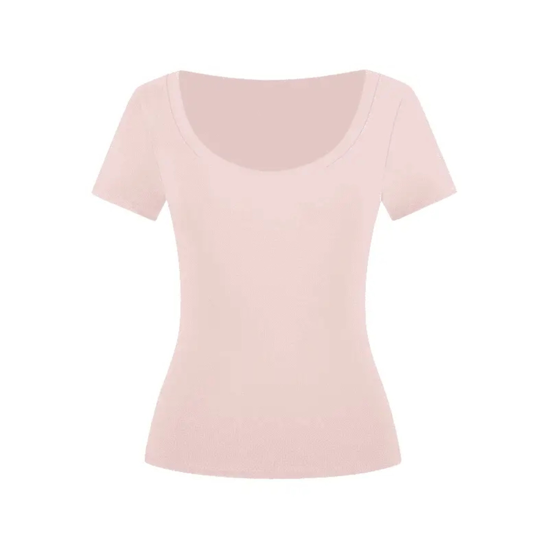 반팔 티셔츠 여성용 어깨 대형 U 넥 로우 칼라 올 매치 슬리밍 타이트 허리 2025 새로운 여름 탑 기본스토어 가기