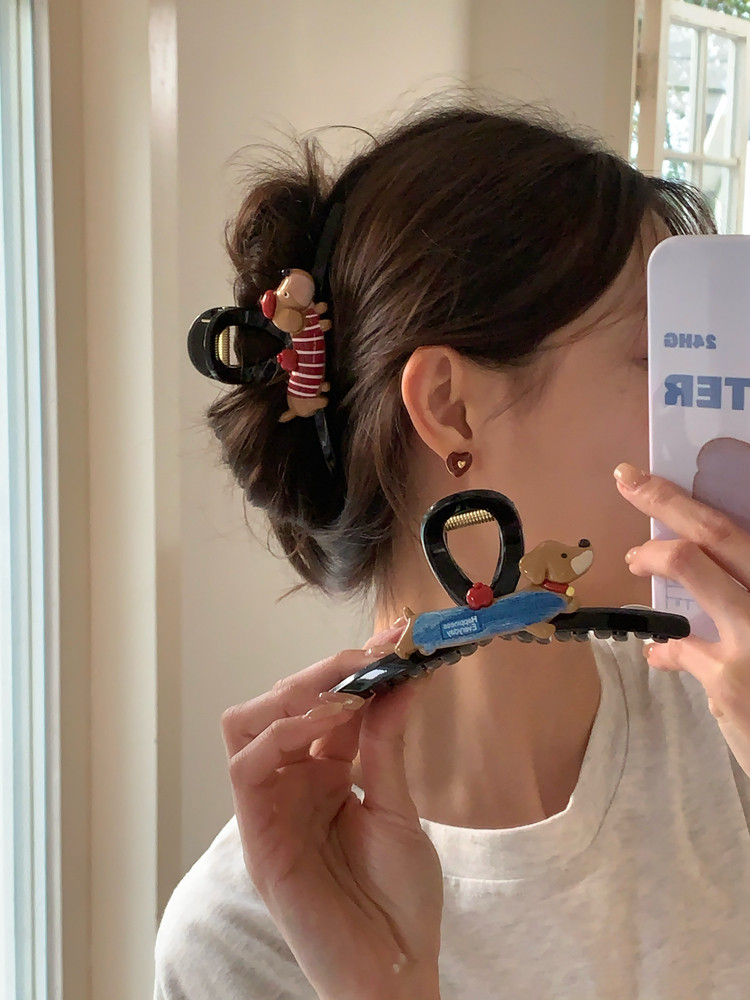 귀여운 닥스 훈트 강아지 잡아 클립 2025 새로운 만화 소녀 하트 백 헤드 상어 클립 디스크 헤어 클립 헤어 액세서리