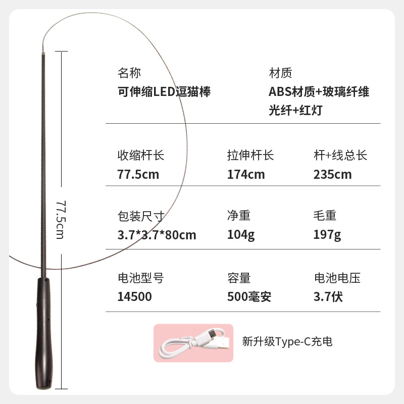 애완동물 고양이 놀리기 막대, 접이식 LED 고양이 놀리기 막대, 재미있는 고양이 놀리기 막대, 충전식 접이식 LED 애완동물 고양이 놀리기 막대스토어 가기