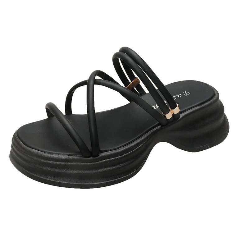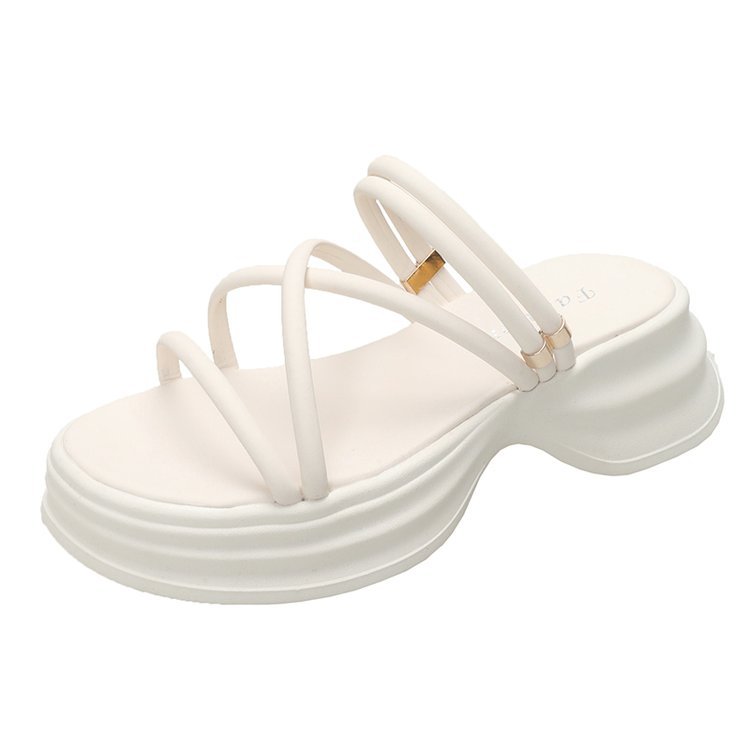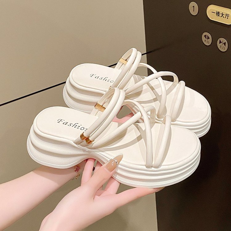 여름 아우터용 여성용 두꺼운 밑창 플랫폼 샌들 2025 여성용 신상 캐주얼 비치 샌들 원라인 샌들 슬리퍼