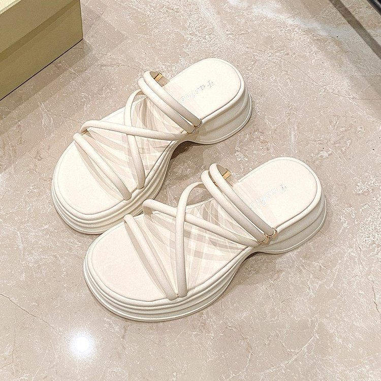 여름 아우터용 여성용 두꺼운 밑창 플랫폼 샌들 2025 여성용 신상 캐주얼 비치 샌들 원라인 샌들 슬리퍼스토어 가기