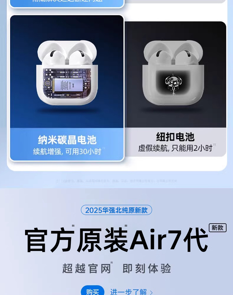 2025년 신형 블루투스 이어폰 진정한 무선 화창베이 최고급 7세대 애플 호환 노이즈 캔슬링 인이어 이어폰스토어 가기