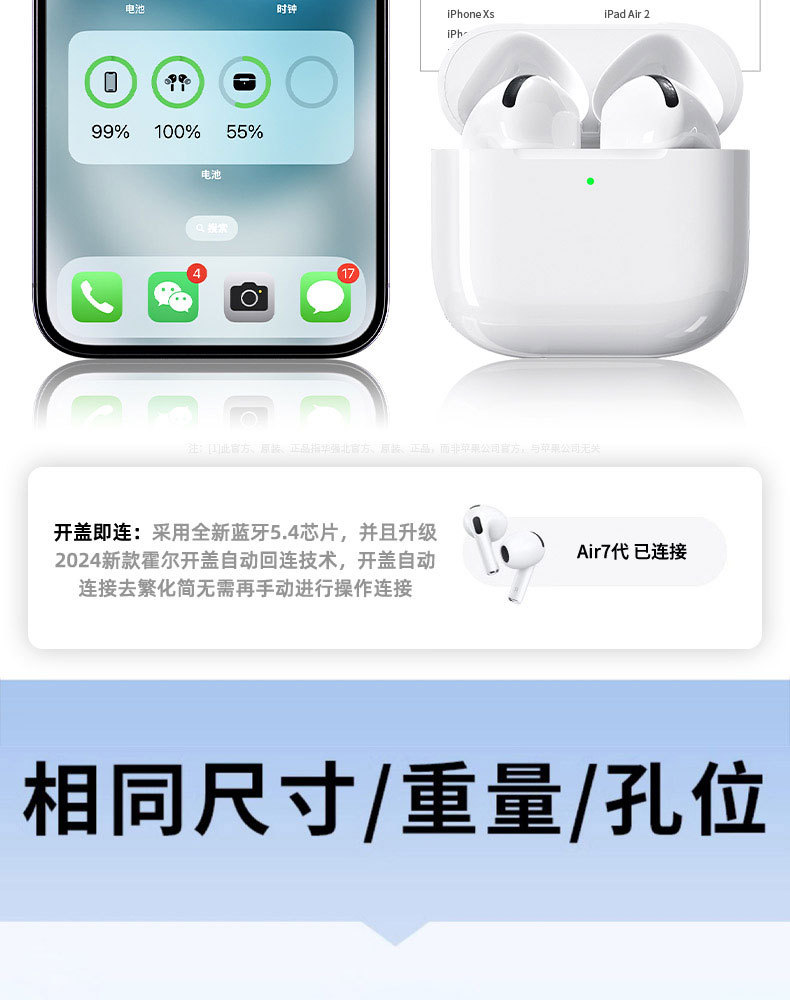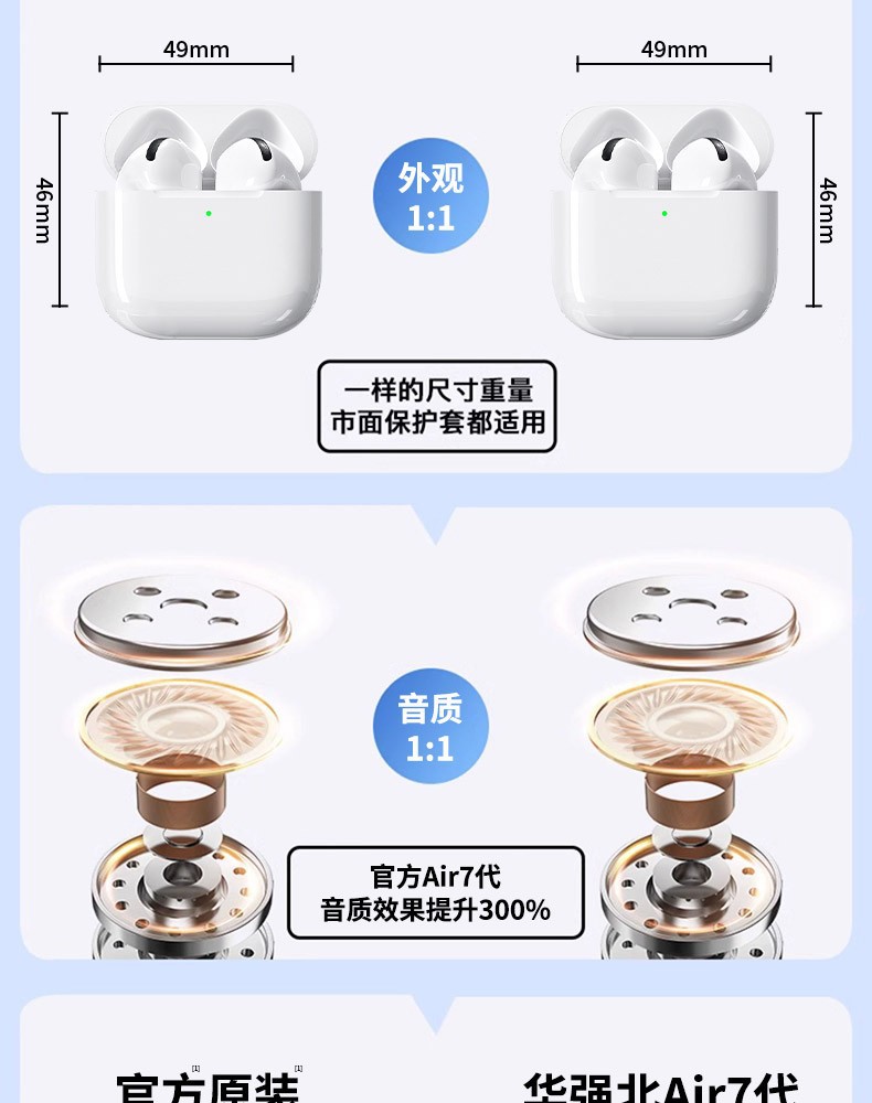 2025년 신형 블루투스 이어폰 진정한 무선 화창베이 최고급 7세대 애플 호환 노이즈 캔슬링 인이어 이어폰