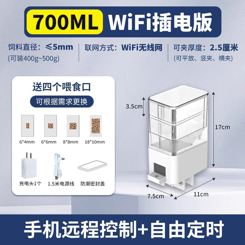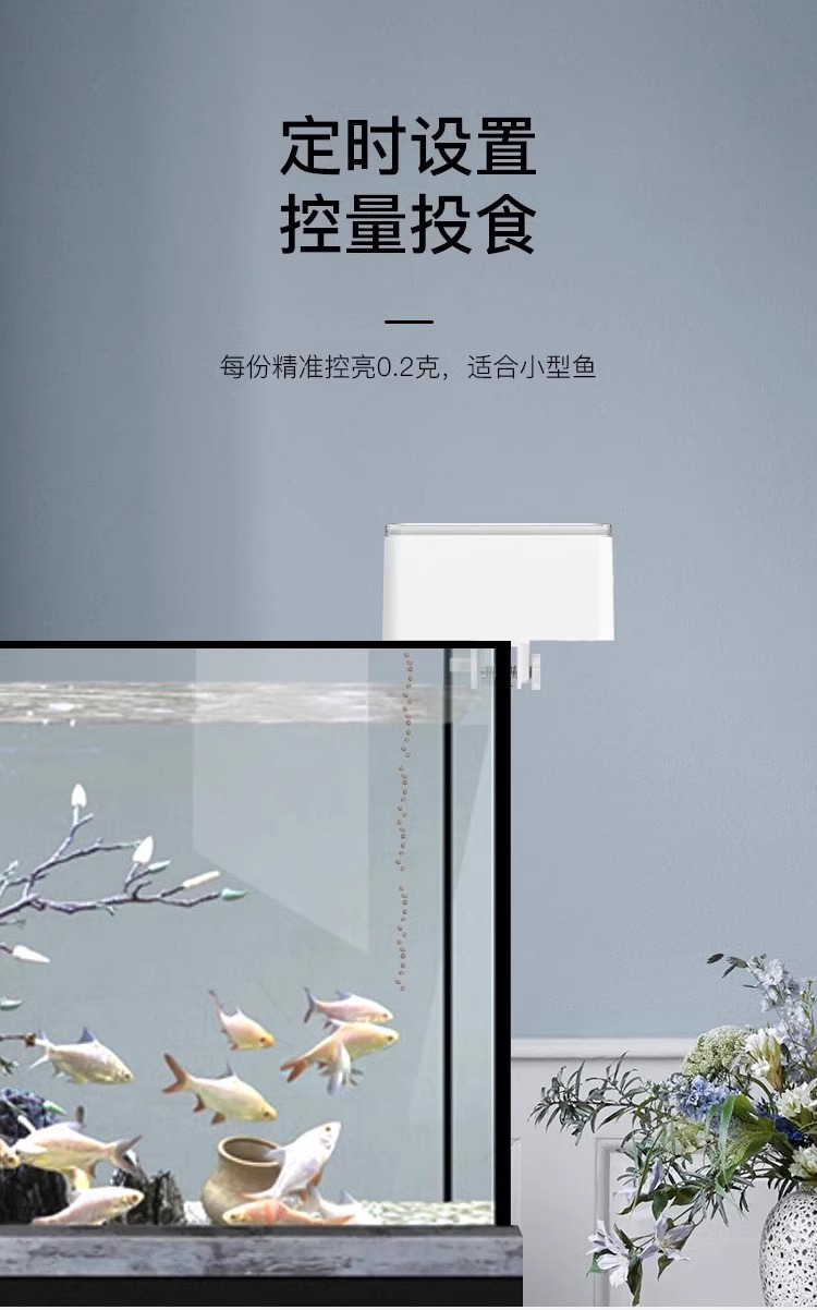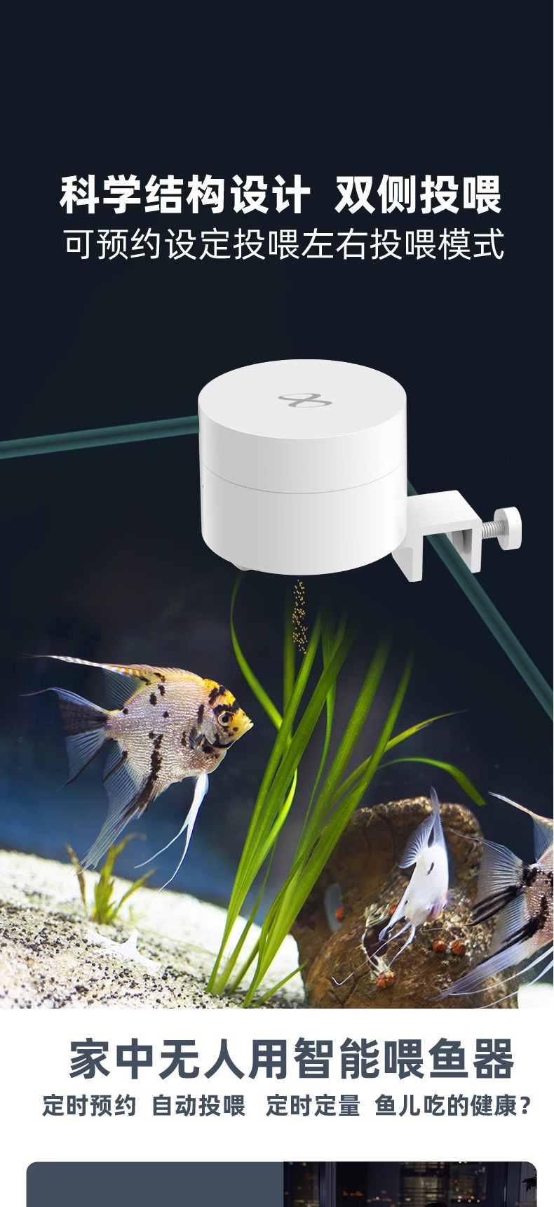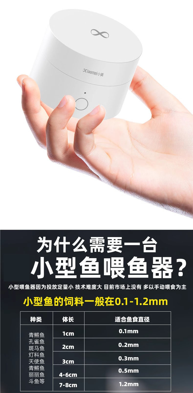 • Wi-Fi 플러그인 모델, 단일 배출구, 1mm 이내의 물고기 먹이 공급 가능