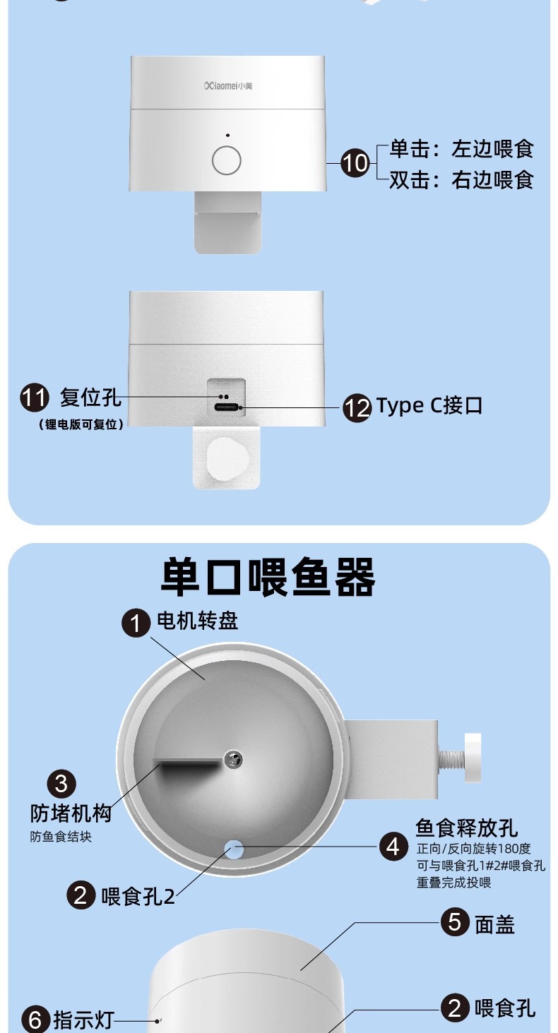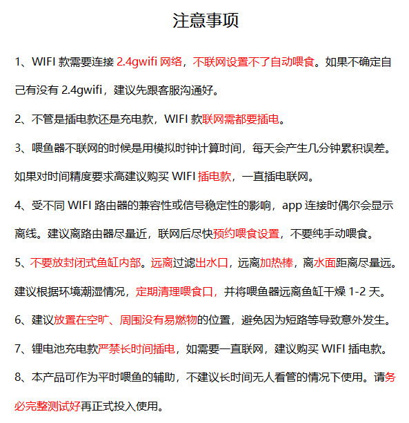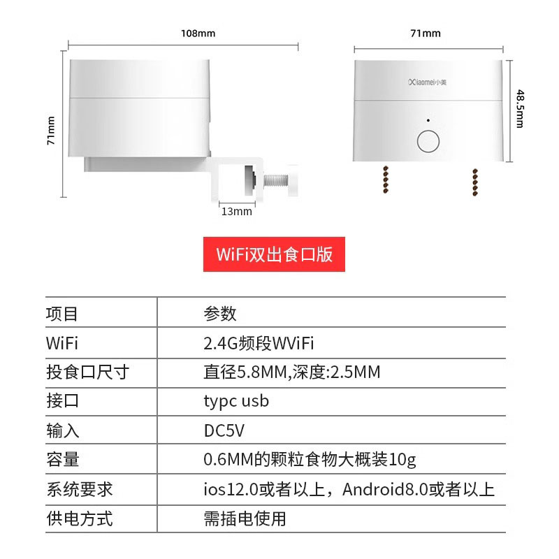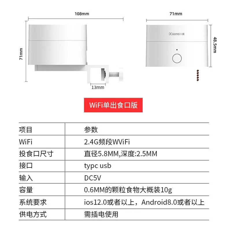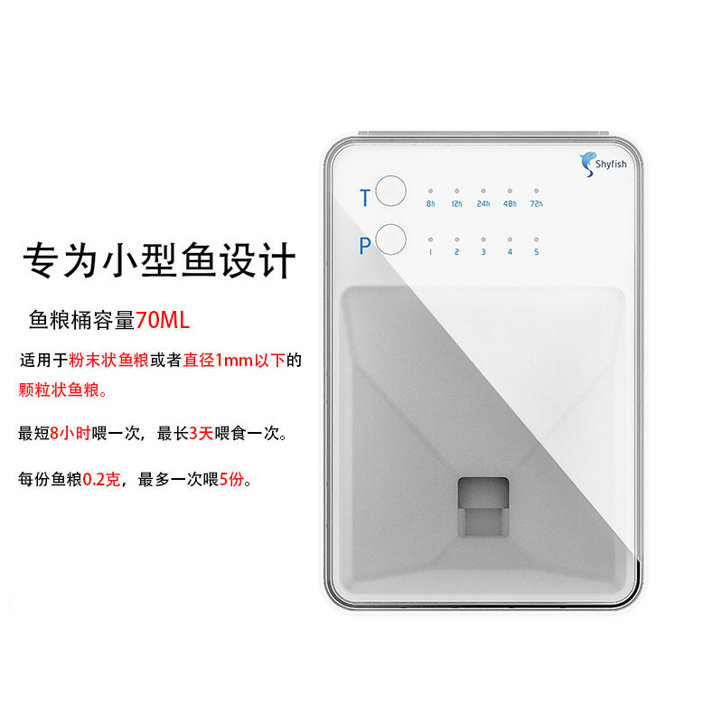 • Wi-Fi가 아닌 배터리 모델, 원격으로 사용할 수 없음, 포트가 하나만 있음, 1mm 이내의 물고기 먹이를 공급할 수 있음