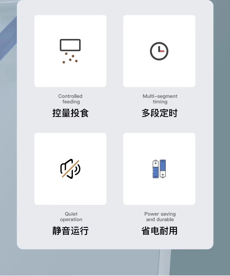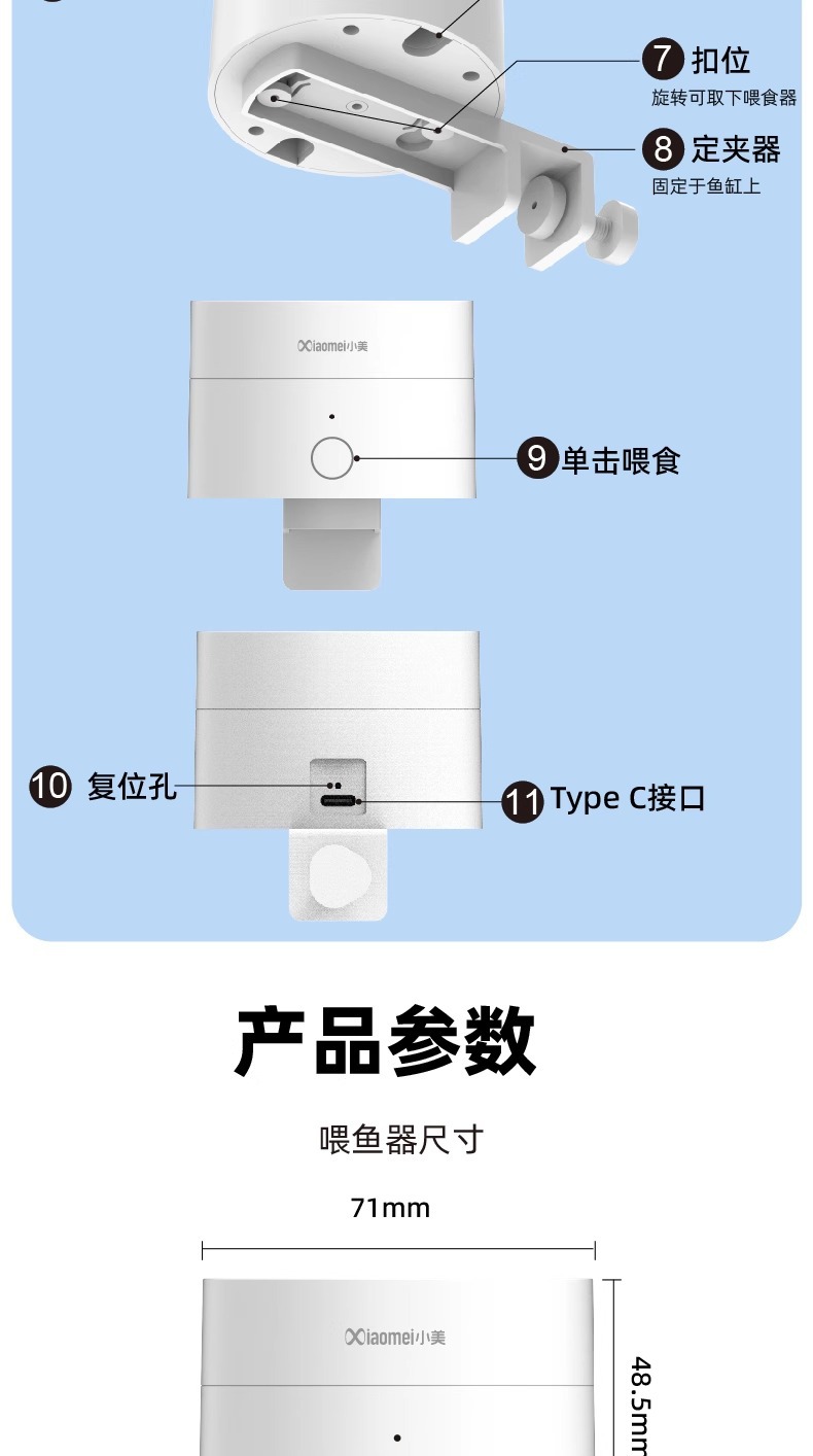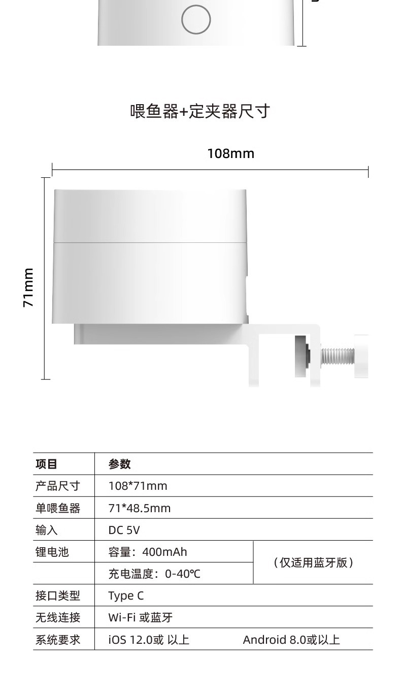 • Wi-Fi가 아닌 배터리 모델, 원격으로 사용할 수 없음, 포트가 하나만 있음, 1mm 이내의 물고기 먹이를 공급할 수 있음