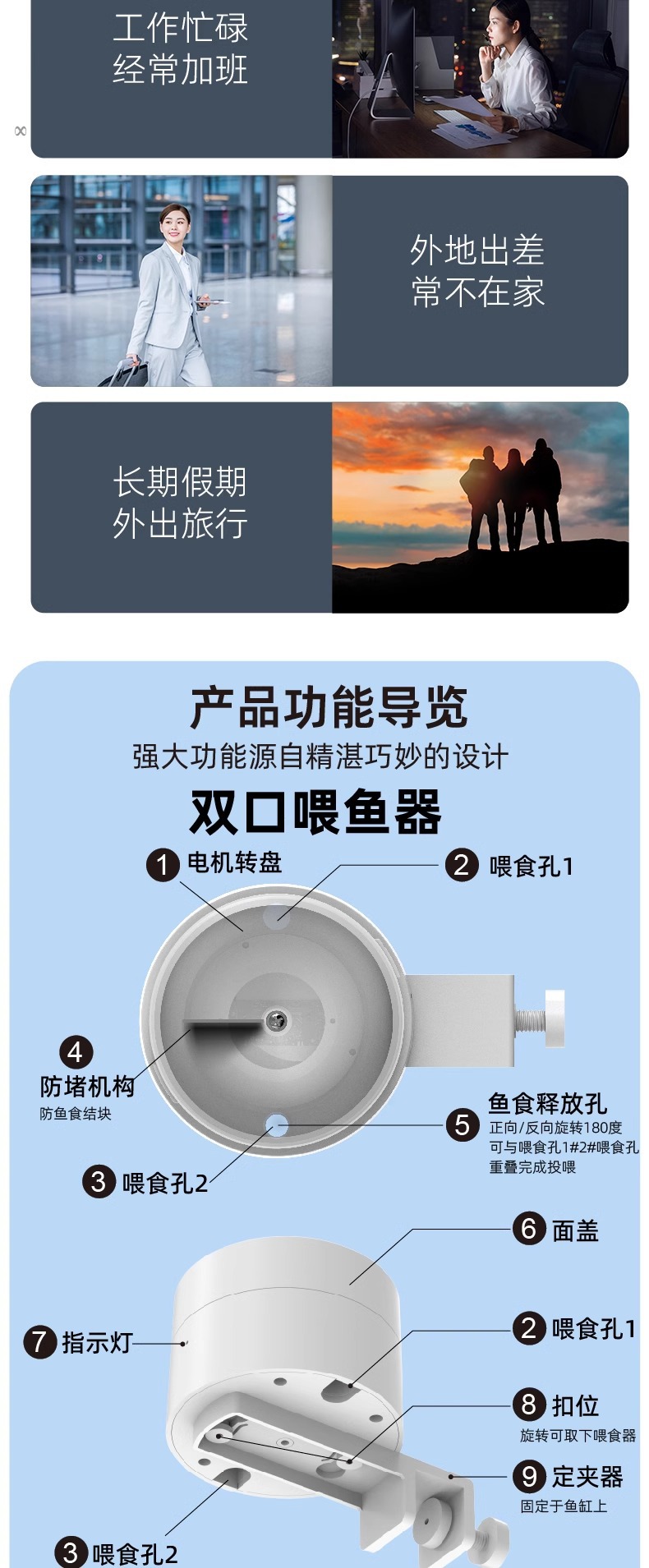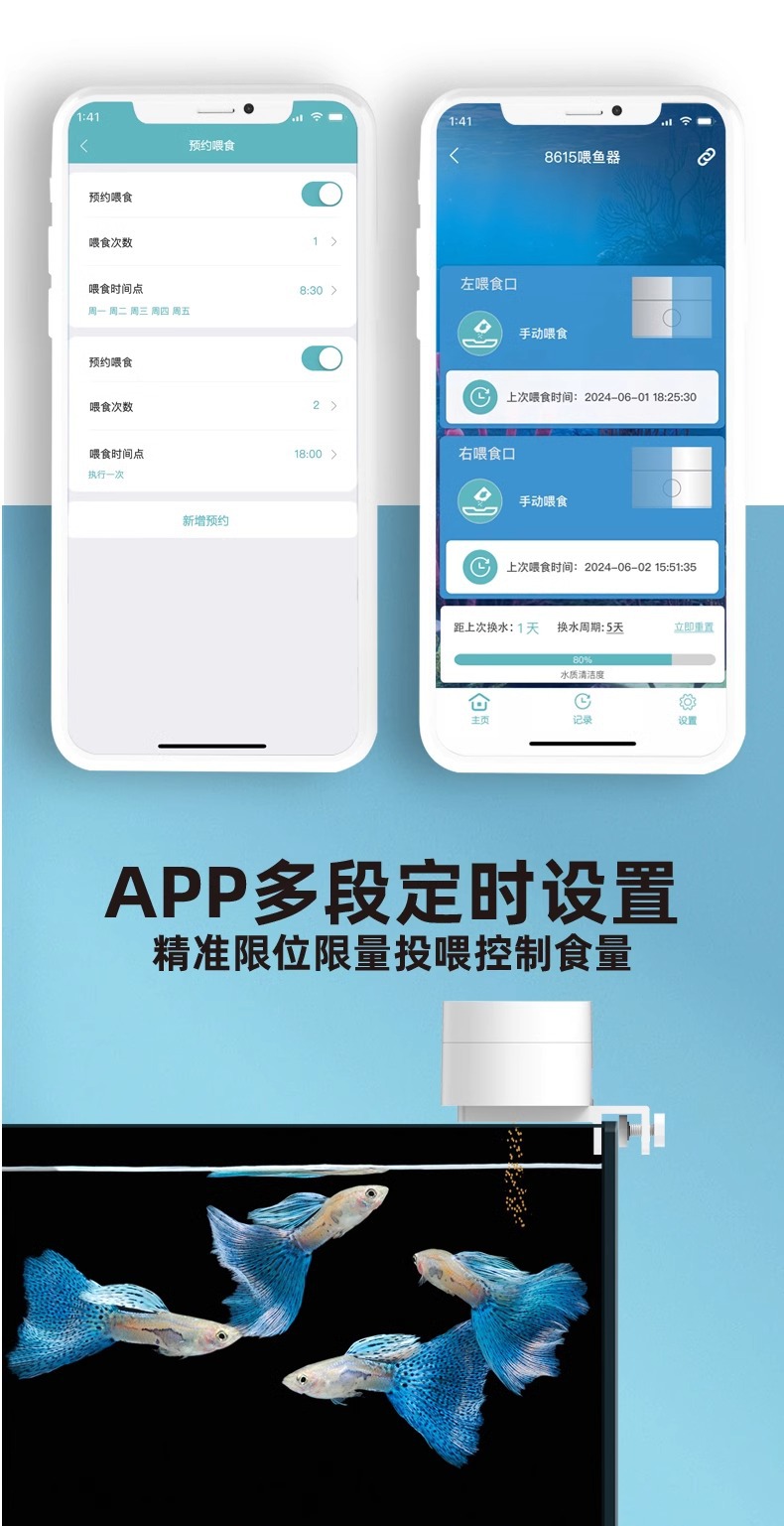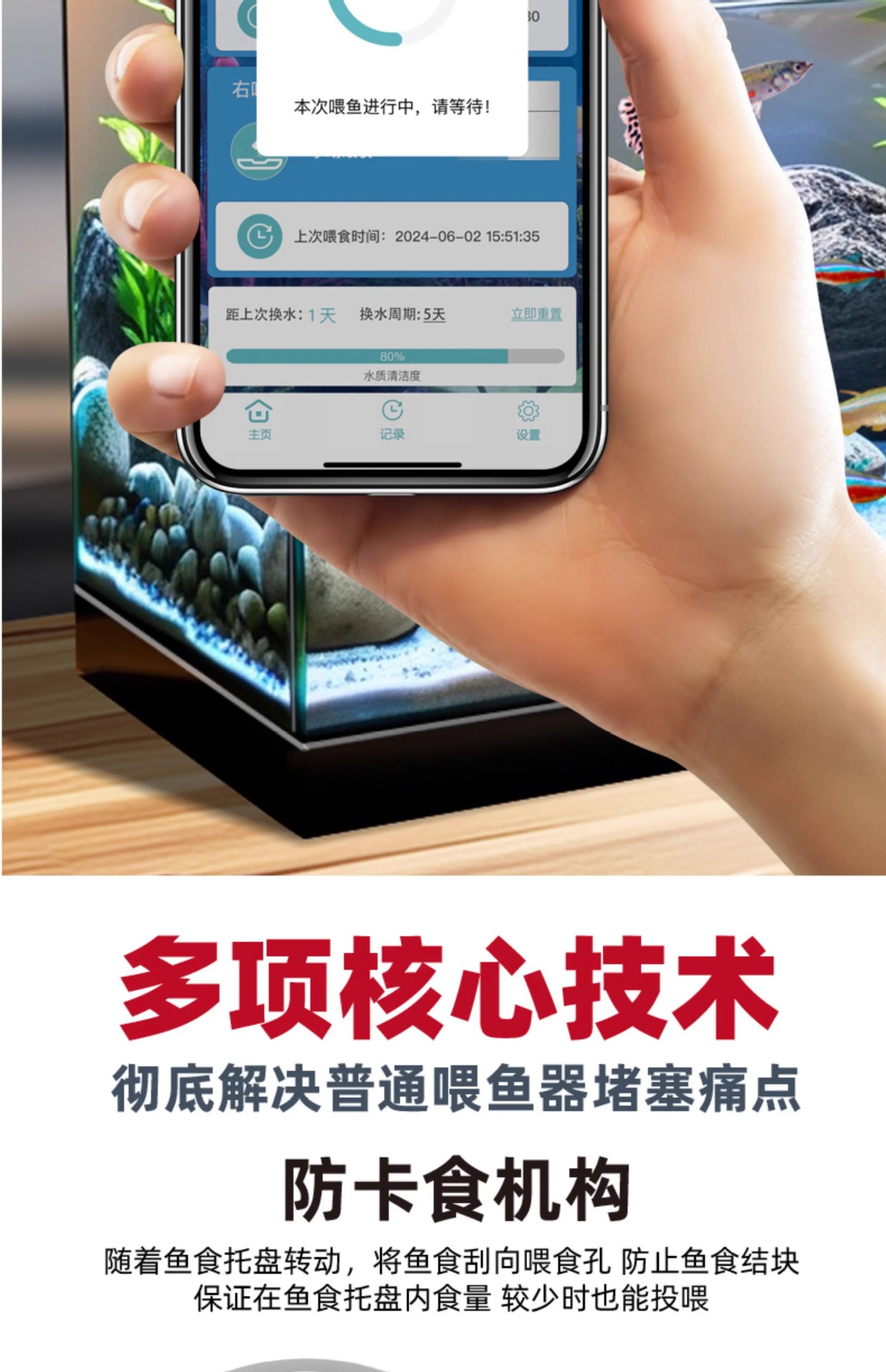 • Wi-Fi 플러그인 모델, 이중 배출구, 1mm 이내의 물고기 먹이 공급 가능