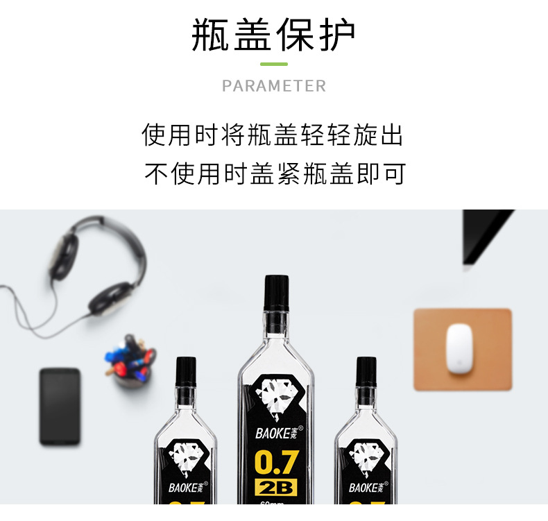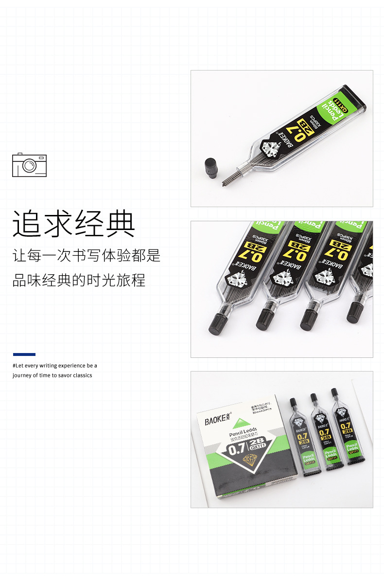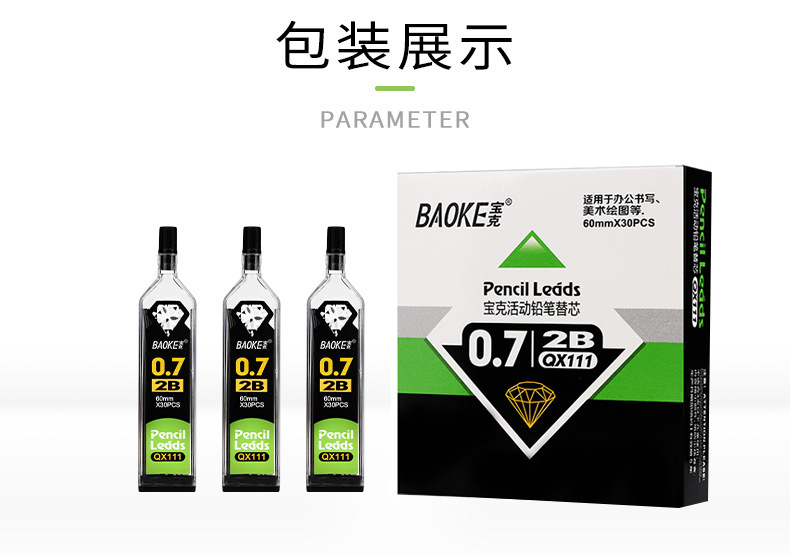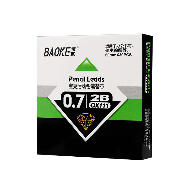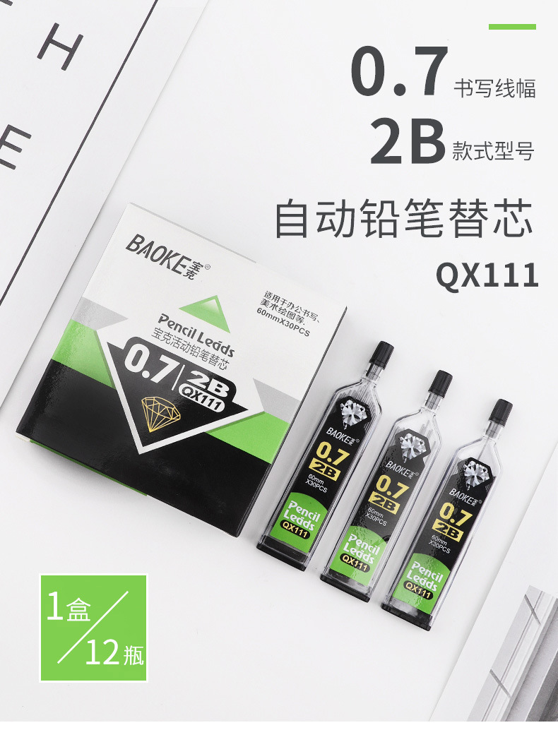 Baoke 특수 하드 친환경 수지 리드 코어 2B0.7mm 연필 리필 학생 시험 자동 펜 리필 QX111스토어 가기