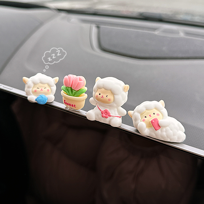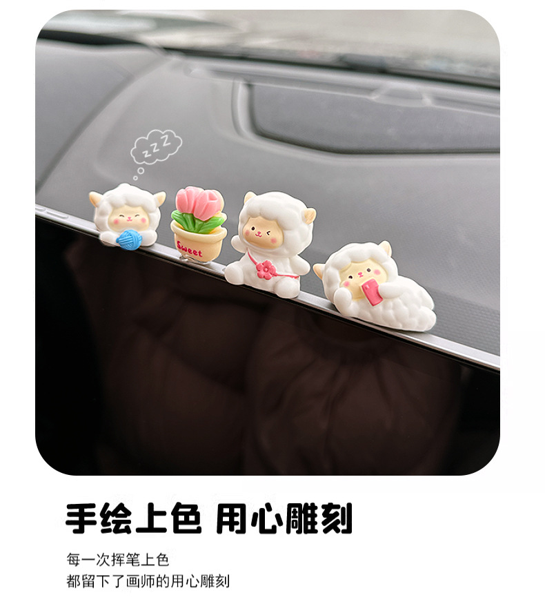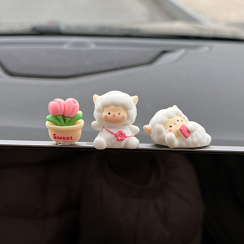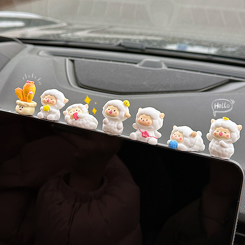 자동차 장식품 중앙 제어 화면 컴퓨터 디스플레이 귀여운 양고기 작은 인형 자동차 장식 전기 자동차 액세서리