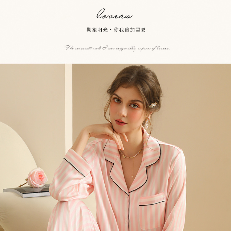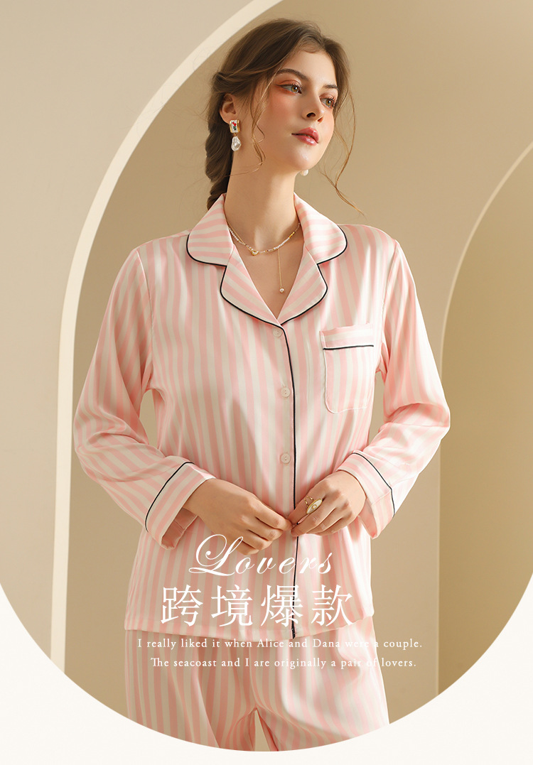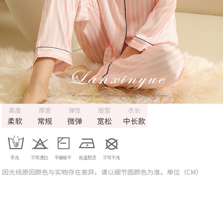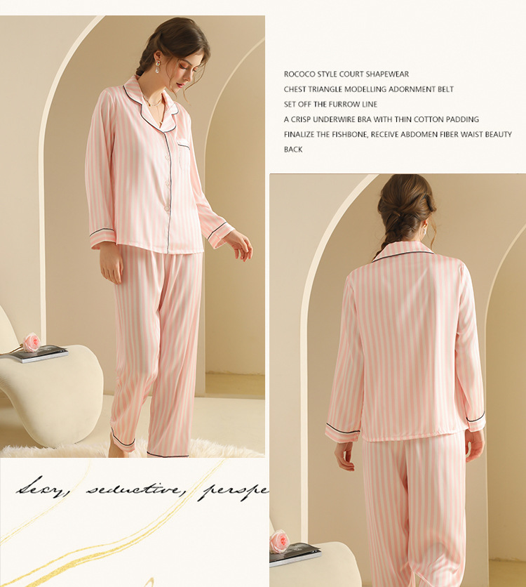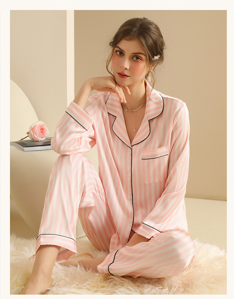 국경 간 인터넷 축하 줄무늬 여성 긴팔 잠옷 세트 카디건 한국식 홈 의류 줄무늬 아이스 실크 외주 얇은 스타일