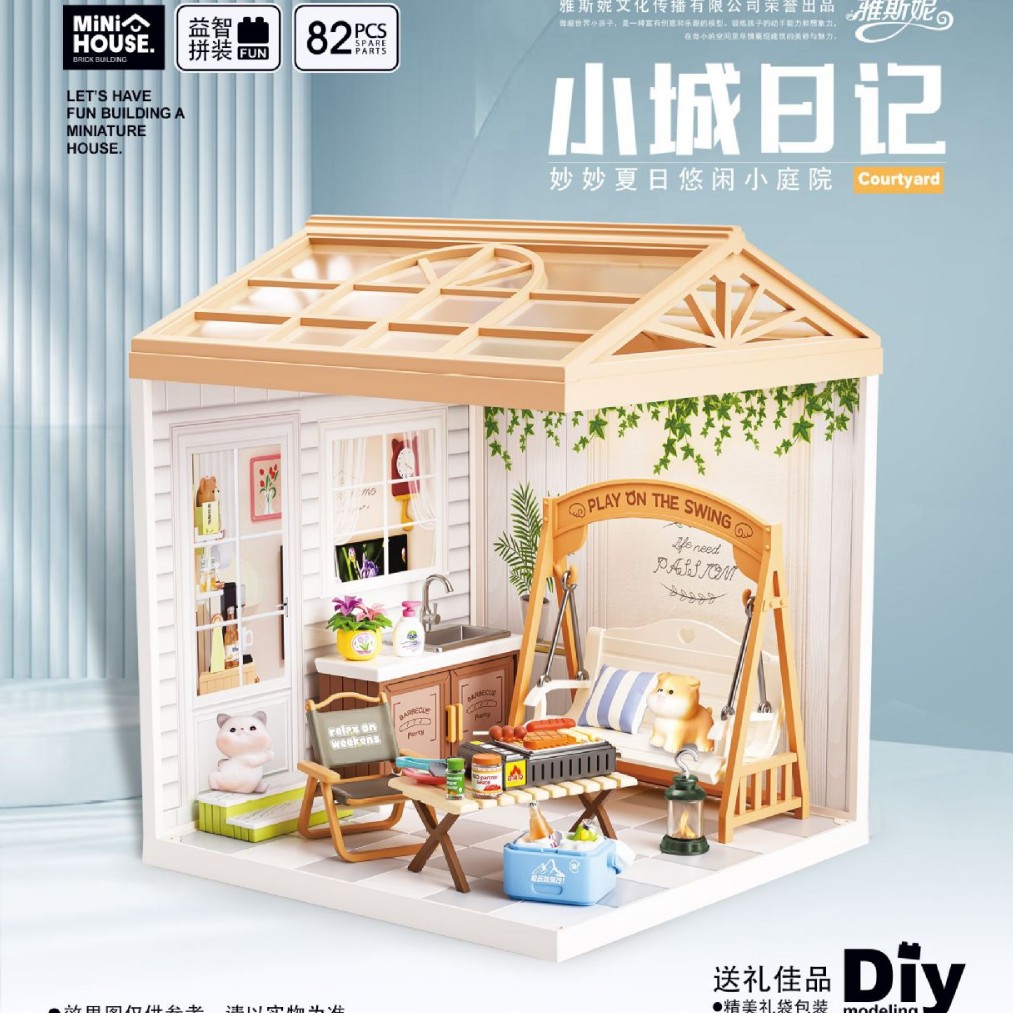 작은 마을 일기 미니어처 작은 안뜰 빌딩 블록 조립 장난감 모델 DIY 오두막 어린이 교육 장난감 도매스토어 가기