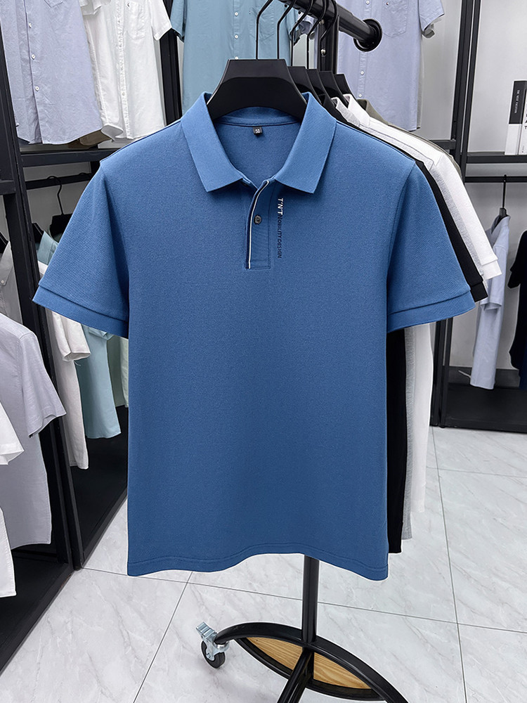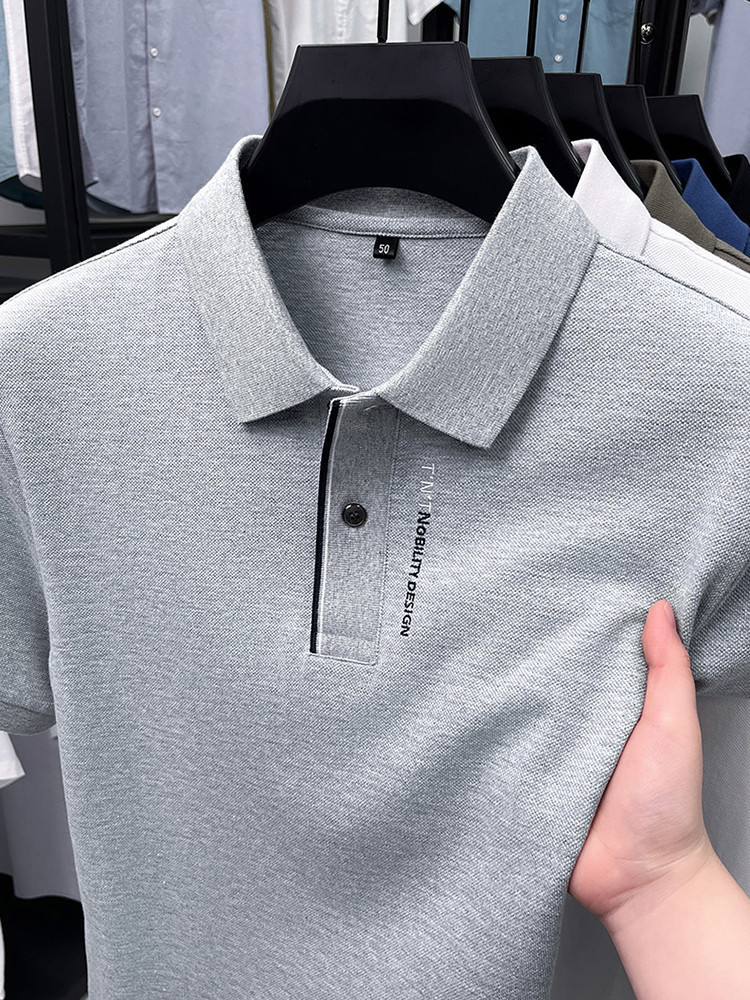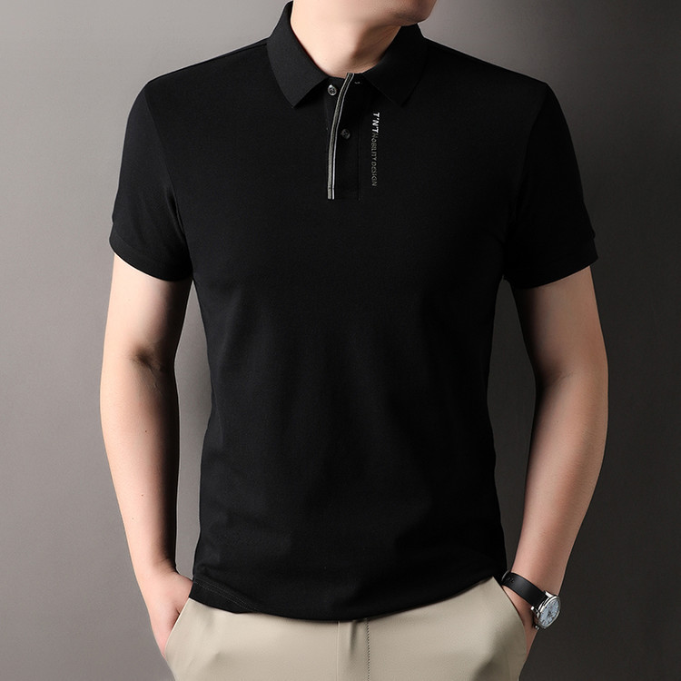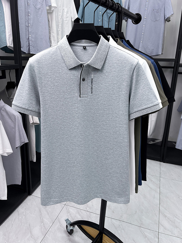 남성용 머서라이즈 롱 스테이플 피케 코튼 반팔 티셔츠 2025 여름 캐주얼 반팔 얇은 루즈 라펠 폴로 셔츠스토어 가기