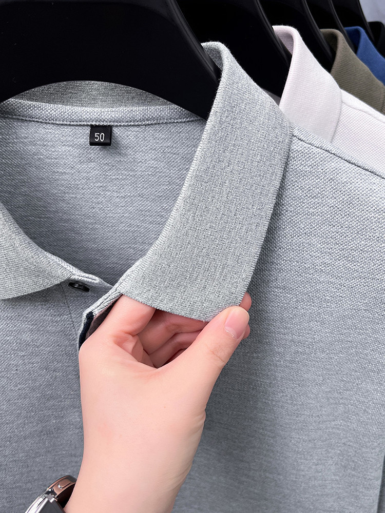 남성용 머서라이즈 롱 스테이플 피케 코튼 반팔 티셔츠 2025 여름 캐주얼 반팔 얇은 루즈 라펠 폴로 셔츠