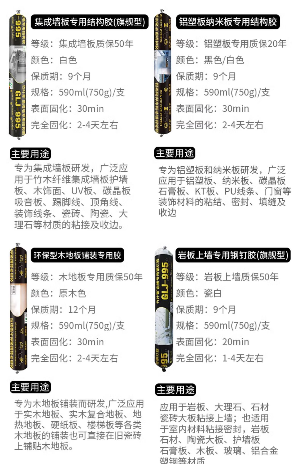 995 중성 실리콘 구조 접착제 강한 세라믹 타일 문과 창문 특수 유리 접착제 내후성 밀봉 야외 방수 투명스토어 가기