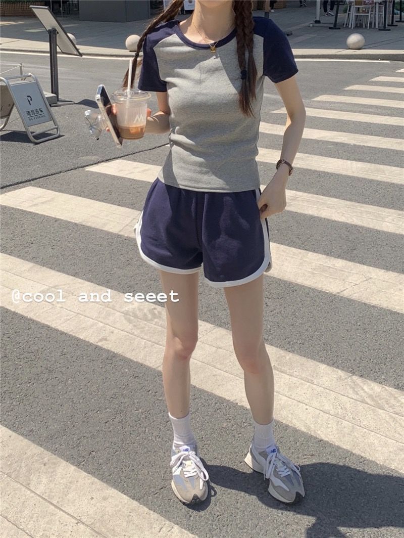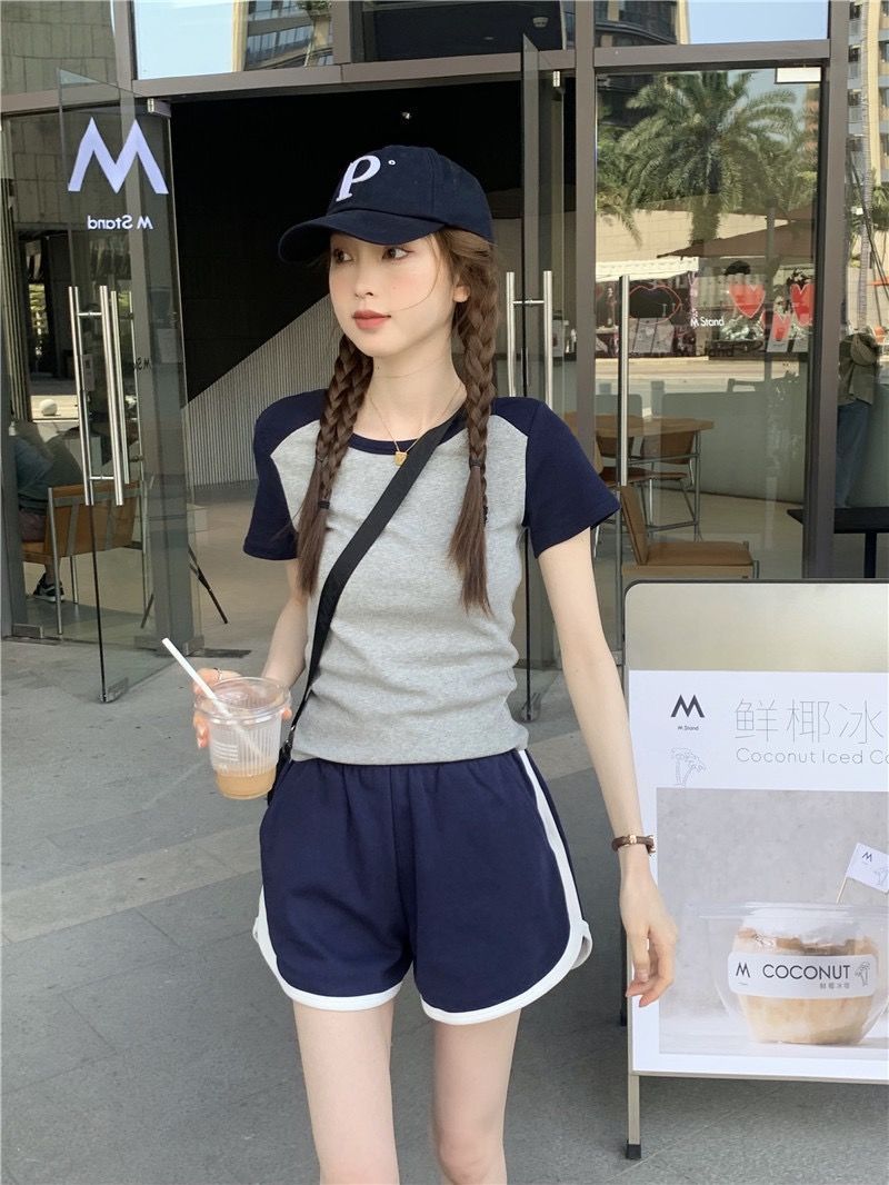 인터넷 연예인 스트리트 스포츠 세트 여성 여름복 러닝 루즈 슬리밍 유행 반팔 반바지 학생 캐주얼 투피스 세트