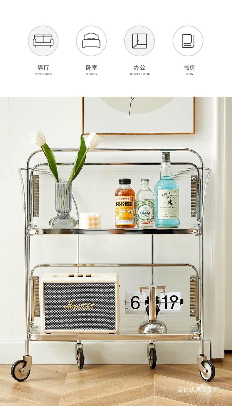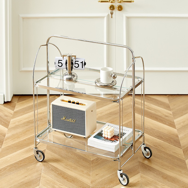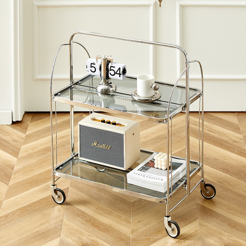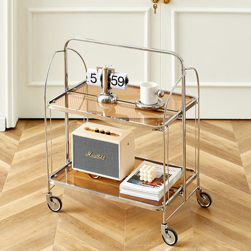 골동품 스타일 유리 트롤리 인터넷 유명 인사 거실 소파 사이드 테이블 작은 커피 테이블 모바일 다이닝 카 접이식 스토리지 랙스토어 가기
