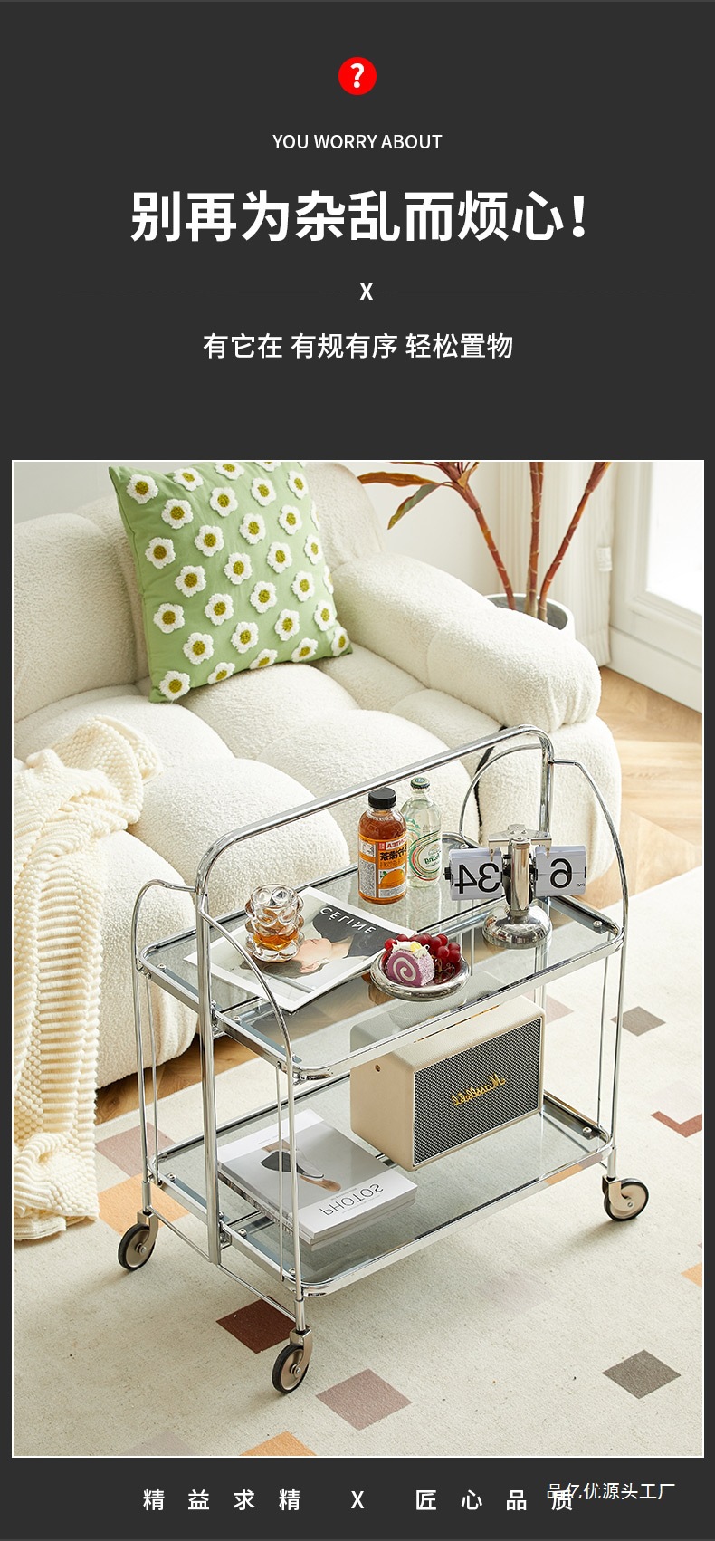 골동품 스타일 유리 트롤리 인터넷 유명 인사 거실 소파 사이드 테이블 작은 커피 테이블 모바일 다이닝 카 접이식 스토리지 랙