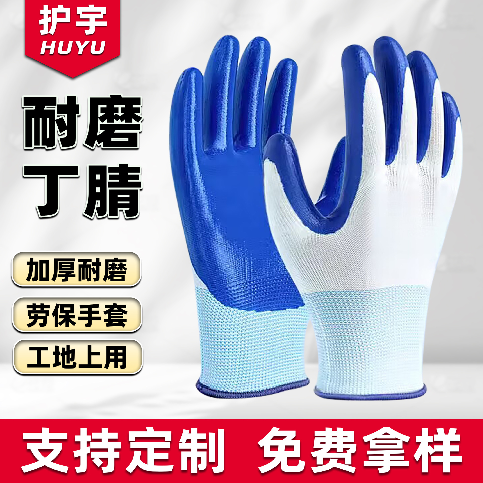 건설 현장용 공장 맞춤형 니트릴 노동 보호 장갑, 니트릴 노동 미끄럼 방지 내마모성 고무 작업 장갑