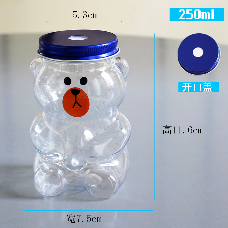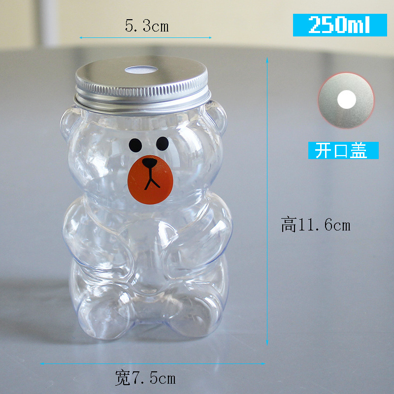 작은 곰 만화 컵 양 지 간루 인터넷 유명인 귀여운 우유 차 병 애완 동물 플라스틱 음료 병 일회용 과일 및 야채 주스 병