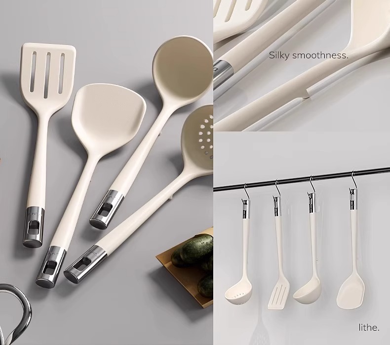 Zhongke 실리콘 주걱 가정용 붙지 않는 특수 고온 방지 식품 주방 용품 요리 주걱 수프 스푼 소쿠리 세트