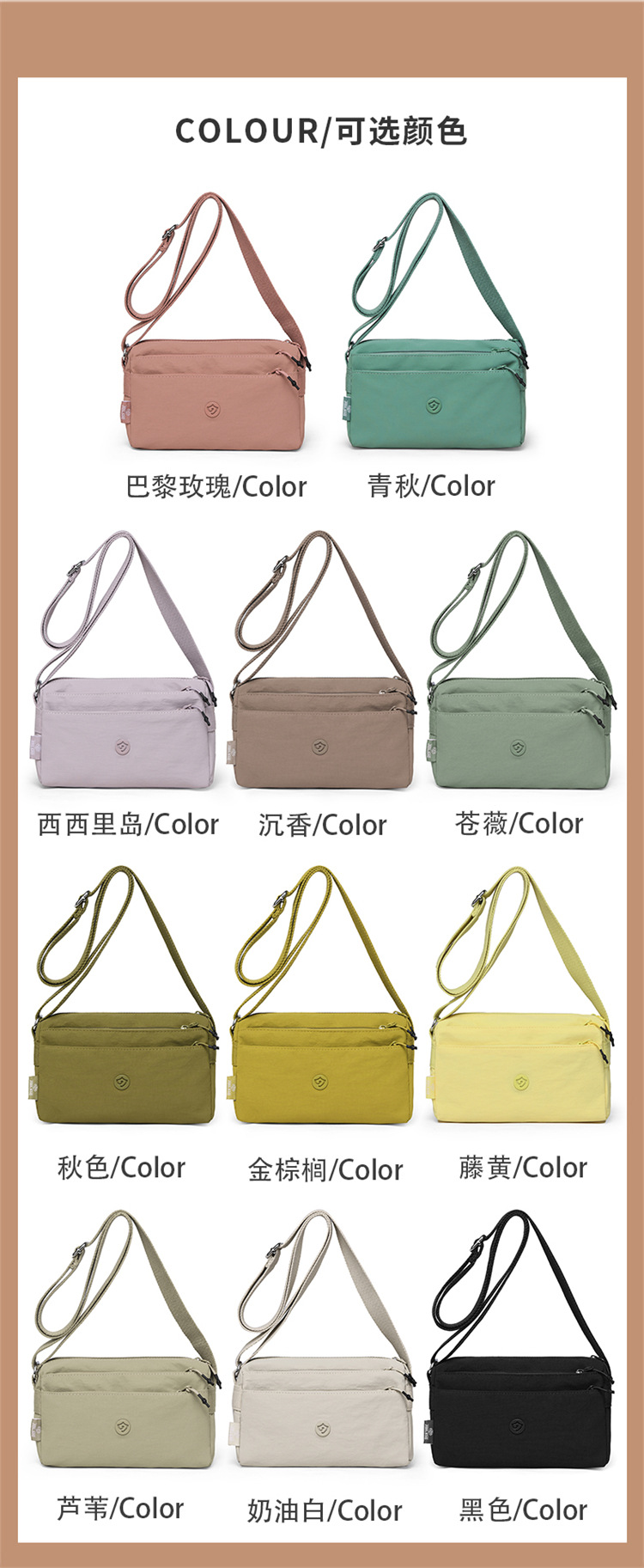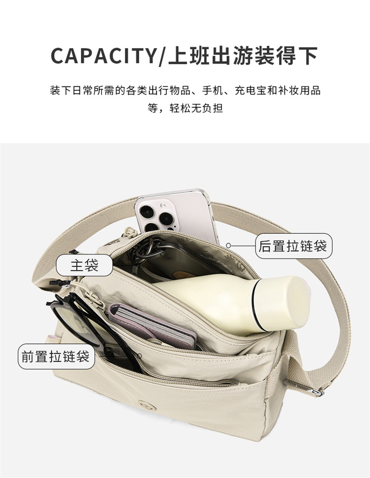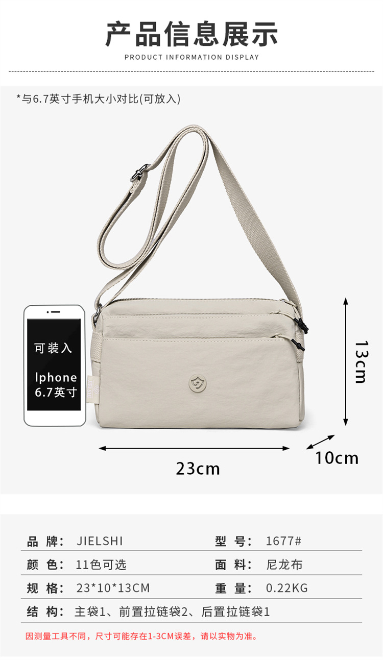 캐주얼 여행용 크로스백, 가볍고 방수되는 나일론 가방, Jielanshi 멀티 수납 공간이 있는 작은 사각형 가방, 트렌디한 여성용 숄더백