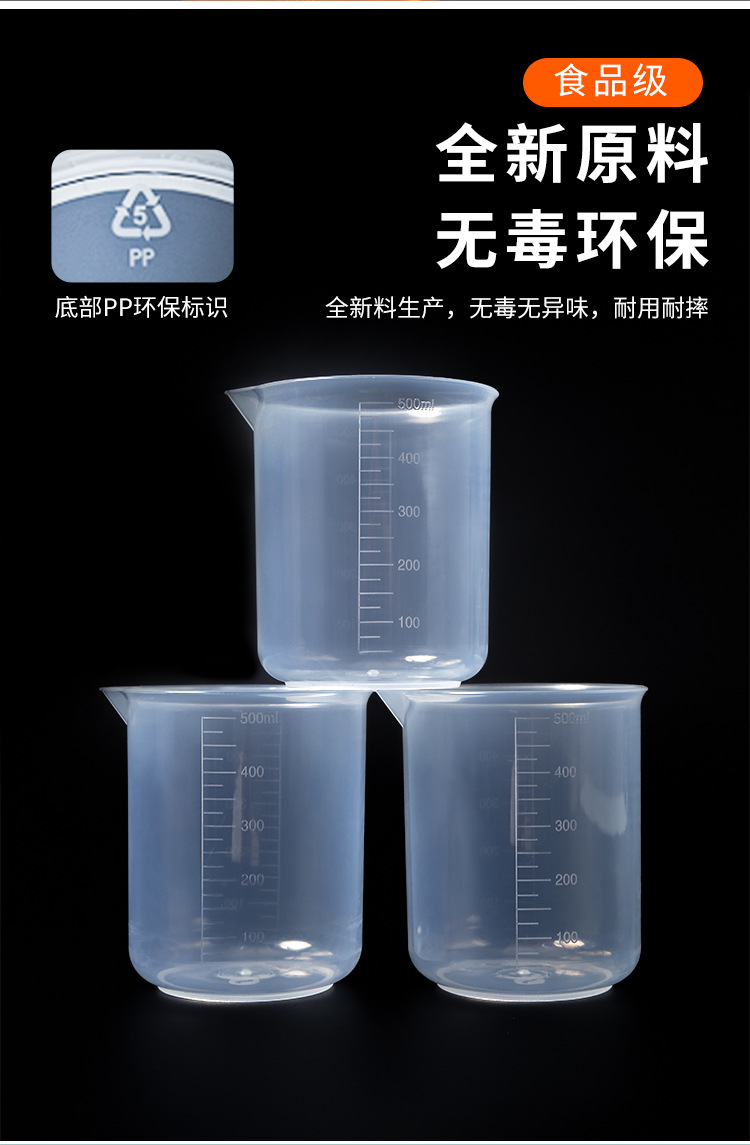 플라스틱 비커 100/500/1000ml 실험실 장비 가늠자 식품 등급 무한 베이킹 측정 컵