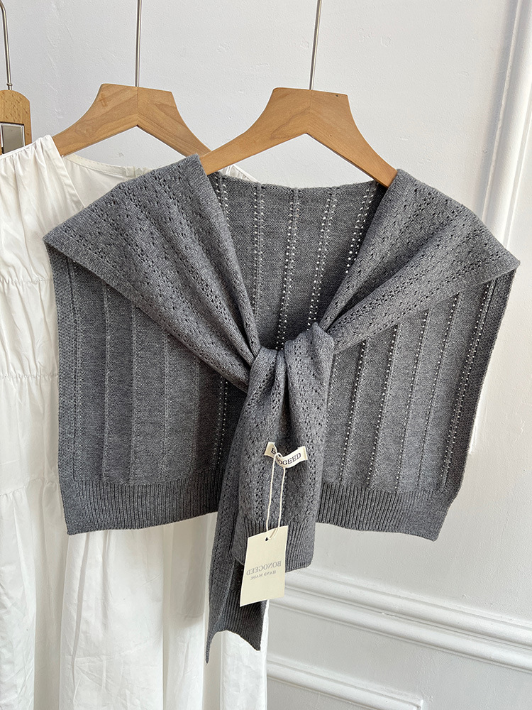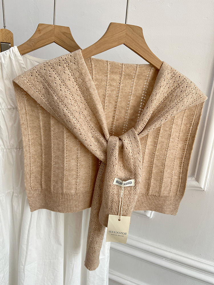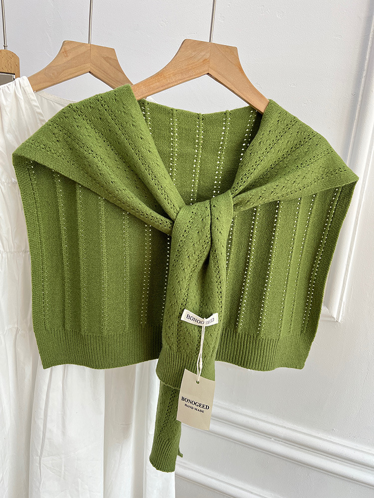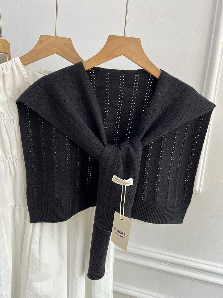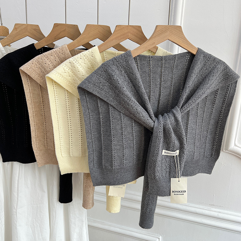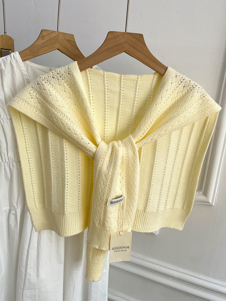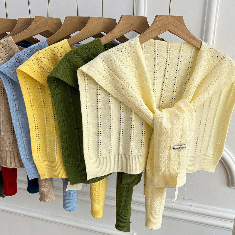 여성을위한 한국 단색 중공 니트 숄 2025 새로운 스타일 외부 매듭 양복 조끼 봄과 여름 유행 따뜻한 어깨