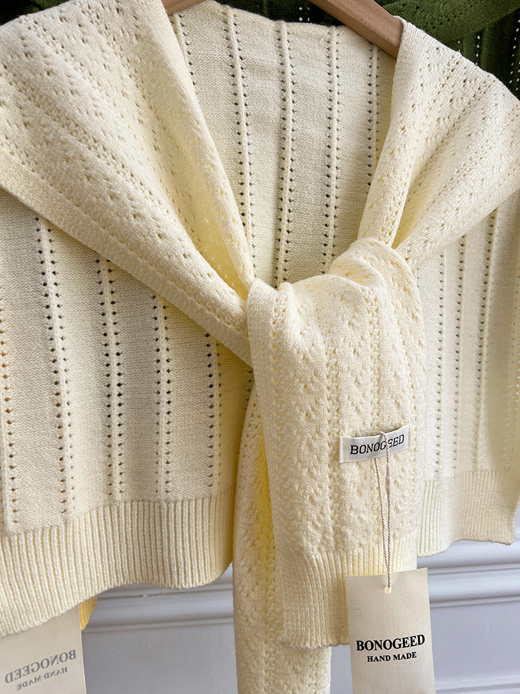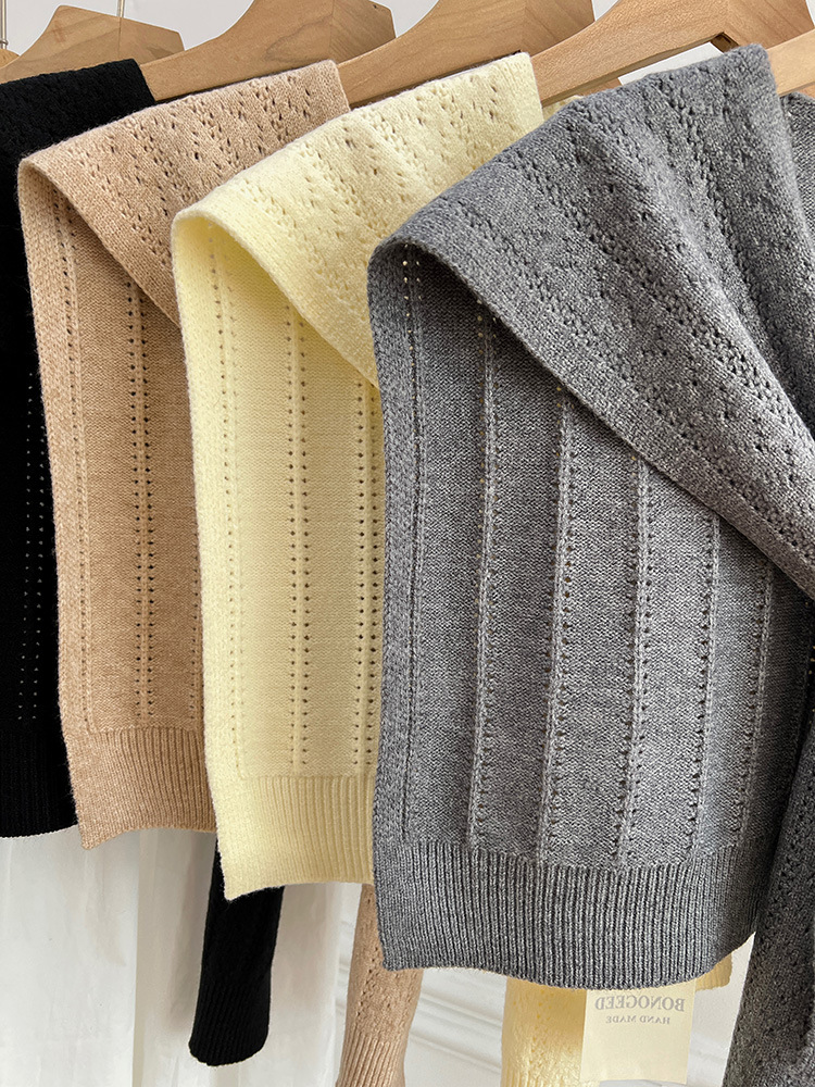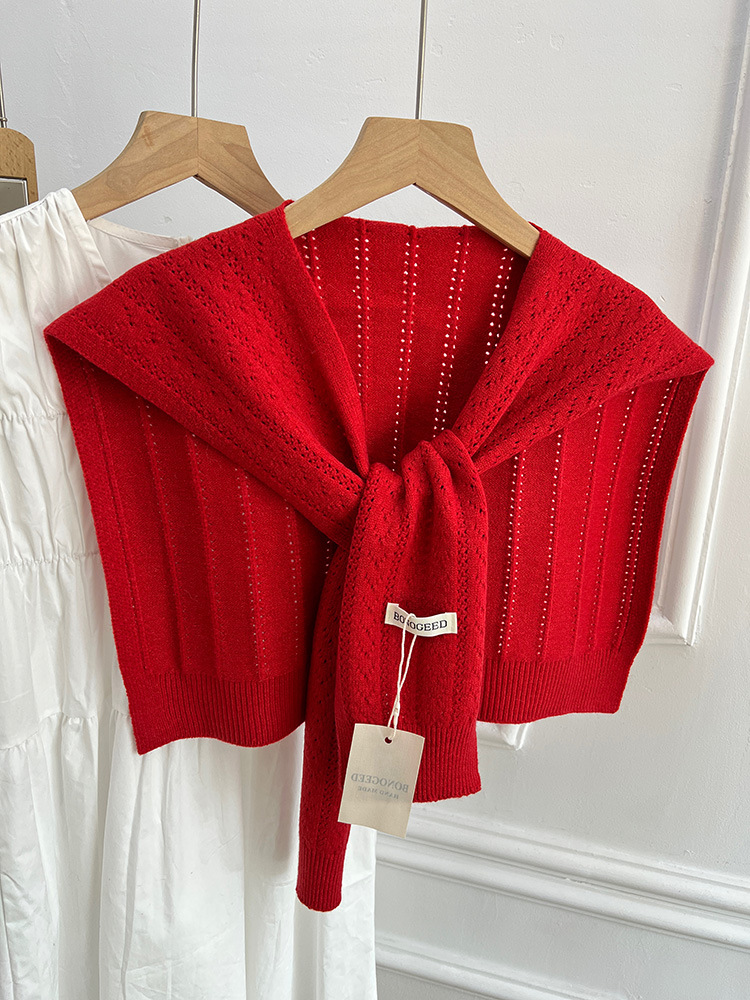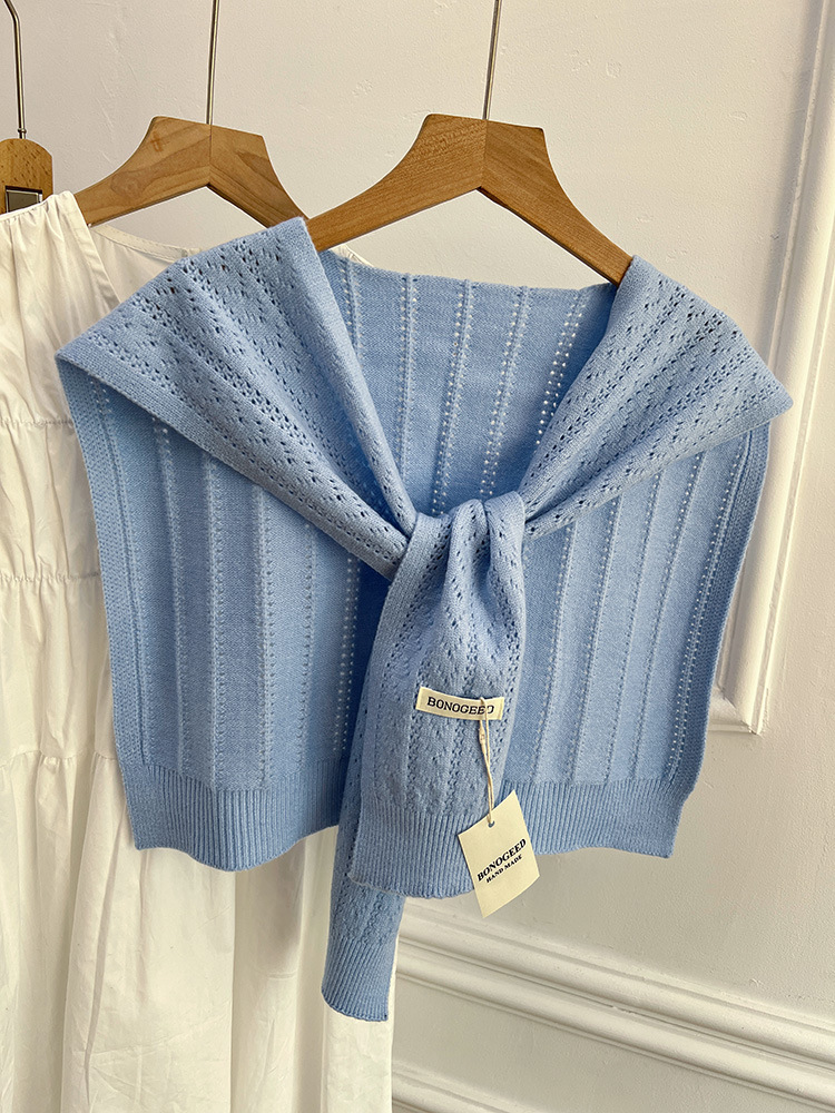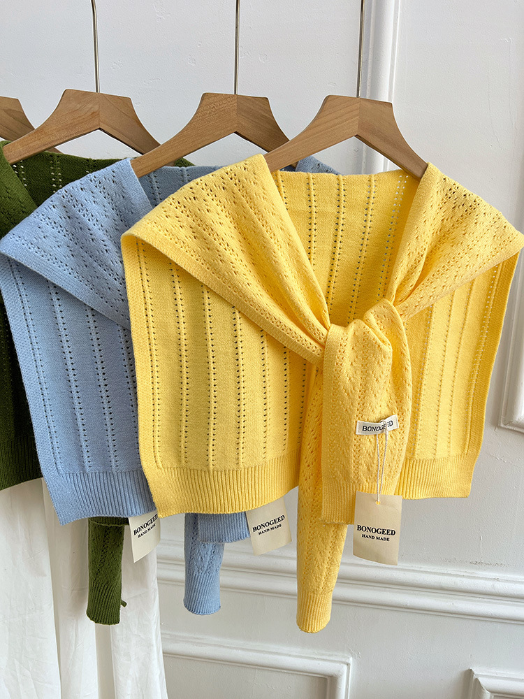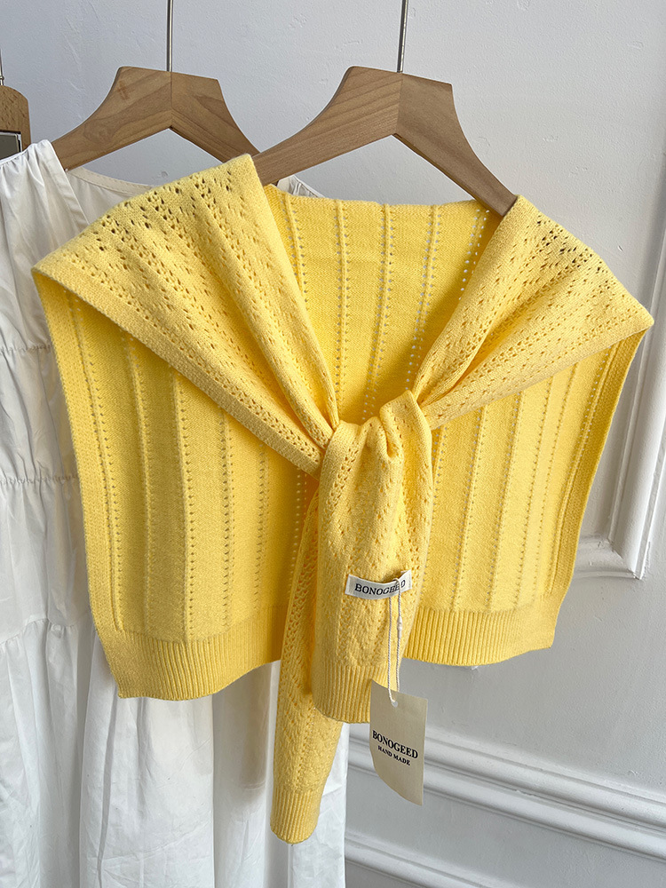 여성을위한 한국 단색 중공 니트 숄 2025 새로운 스타일 외부 매듭 양복 조끼 봄과 여름 유행 따뜻한 어깨