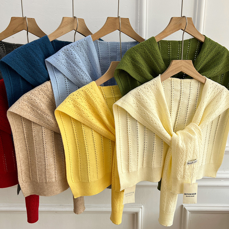 여성을위한 한국 단색 중공 니트 숄 2025 새로운 스타일 외부 매듭 양복 조끼 봄과 여름 유행 따뜻한 어깨스토어 가기