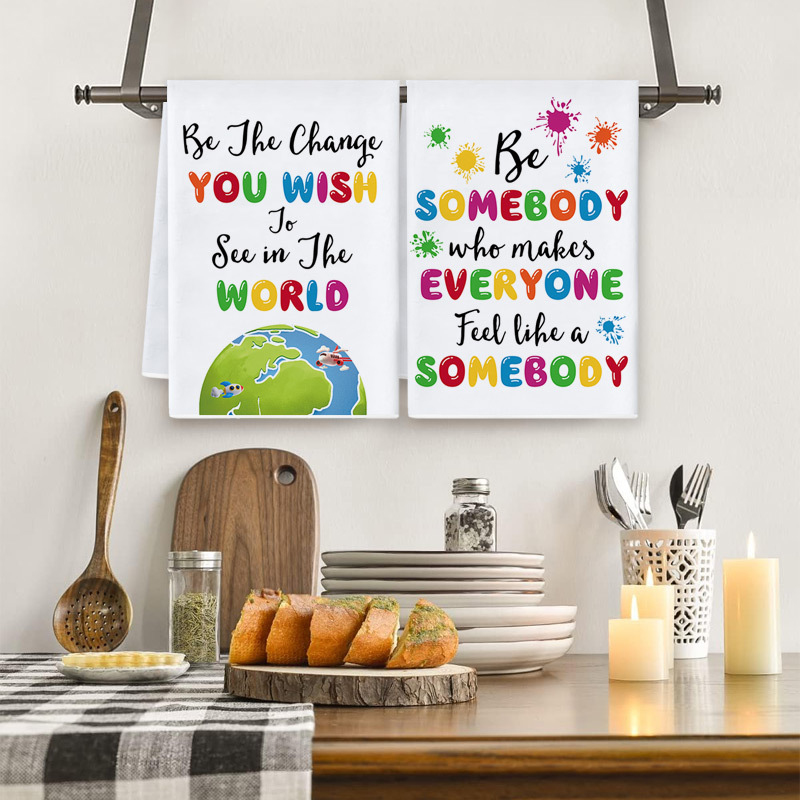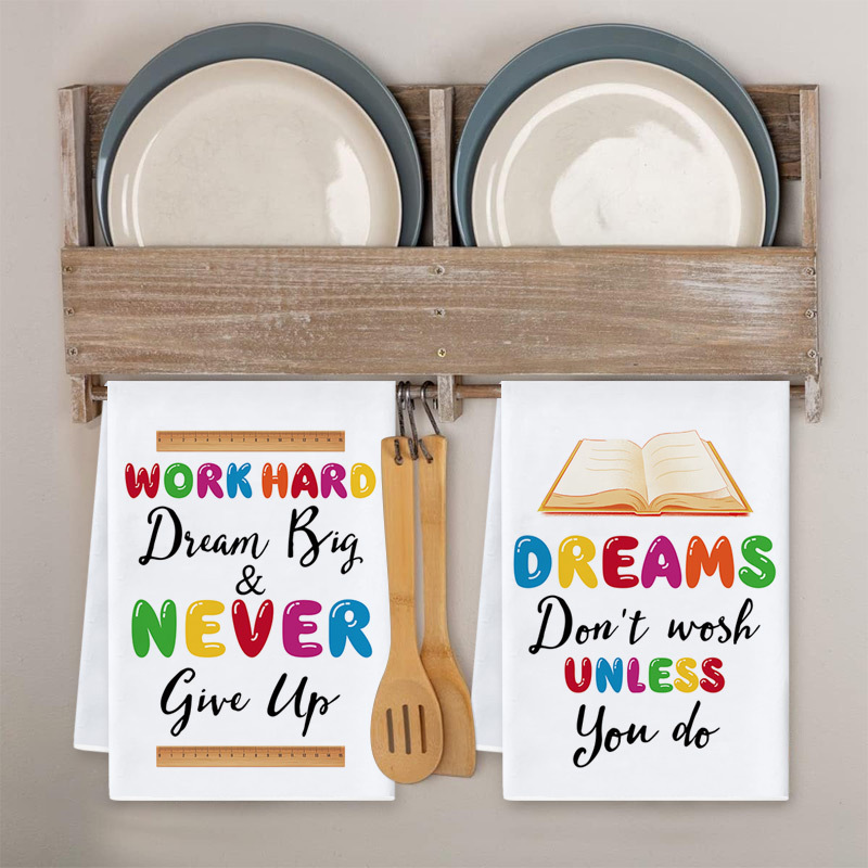 국경 만화 영어 부엌 접시 수건 컬러 영감 슬로건 인쇄 테이블 장식 손 수건 도매