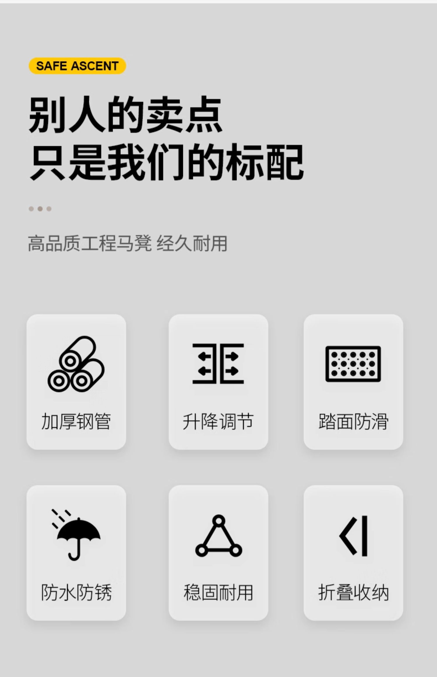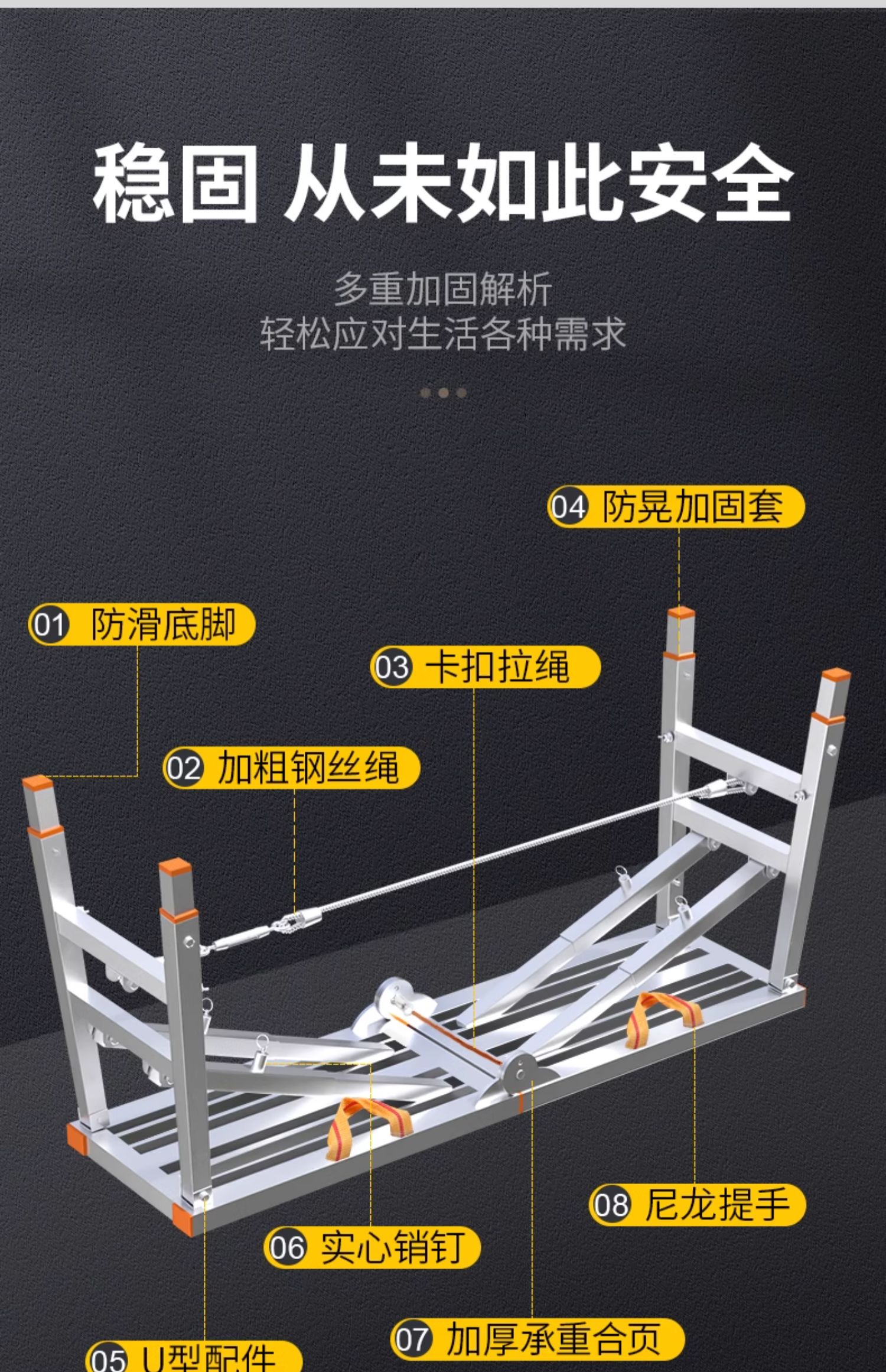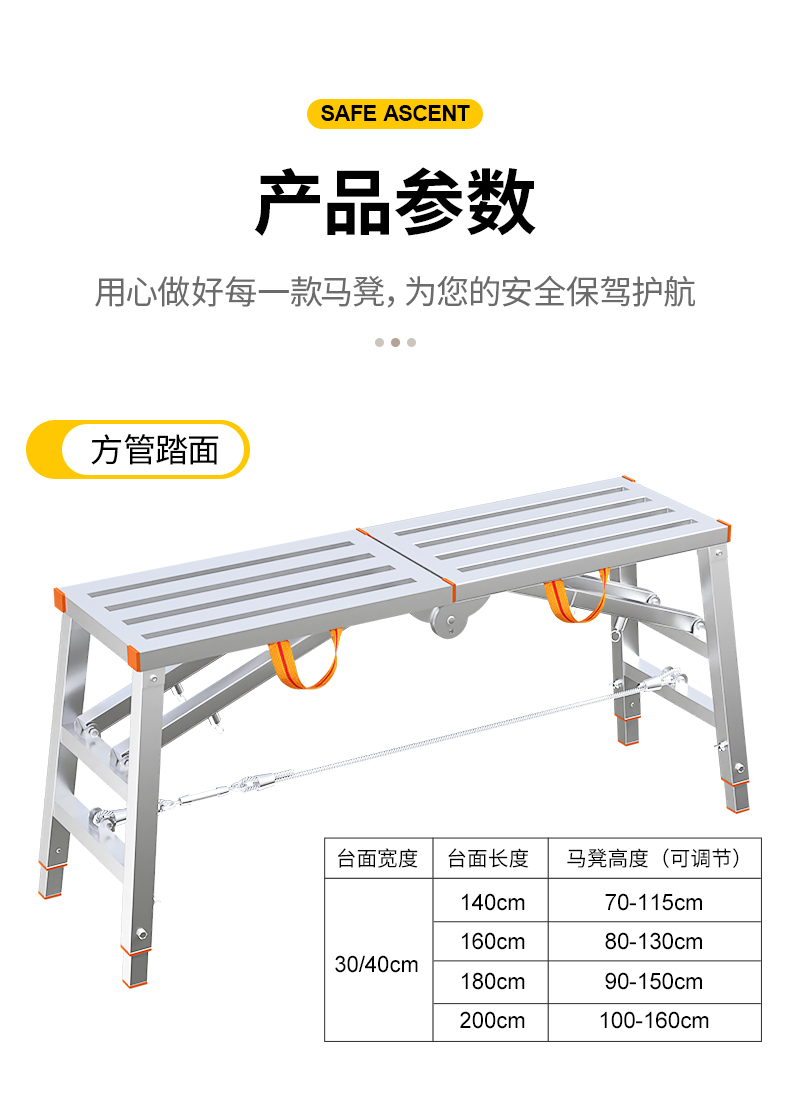 • [두꺼운 0.9mm로 업그레이드] 2.0*40 이중 지지대 미끄럼 방지 표면 - 사다리 의자