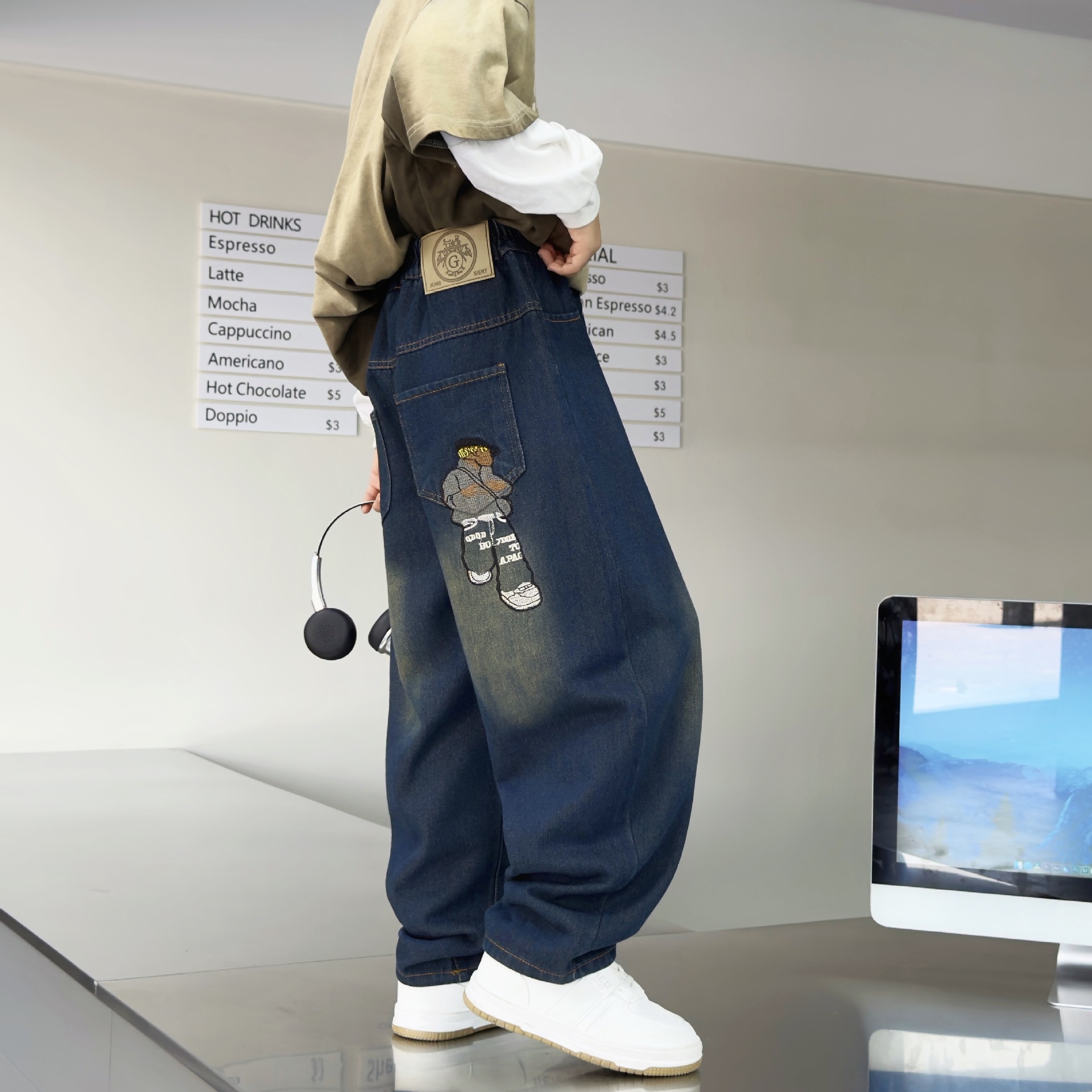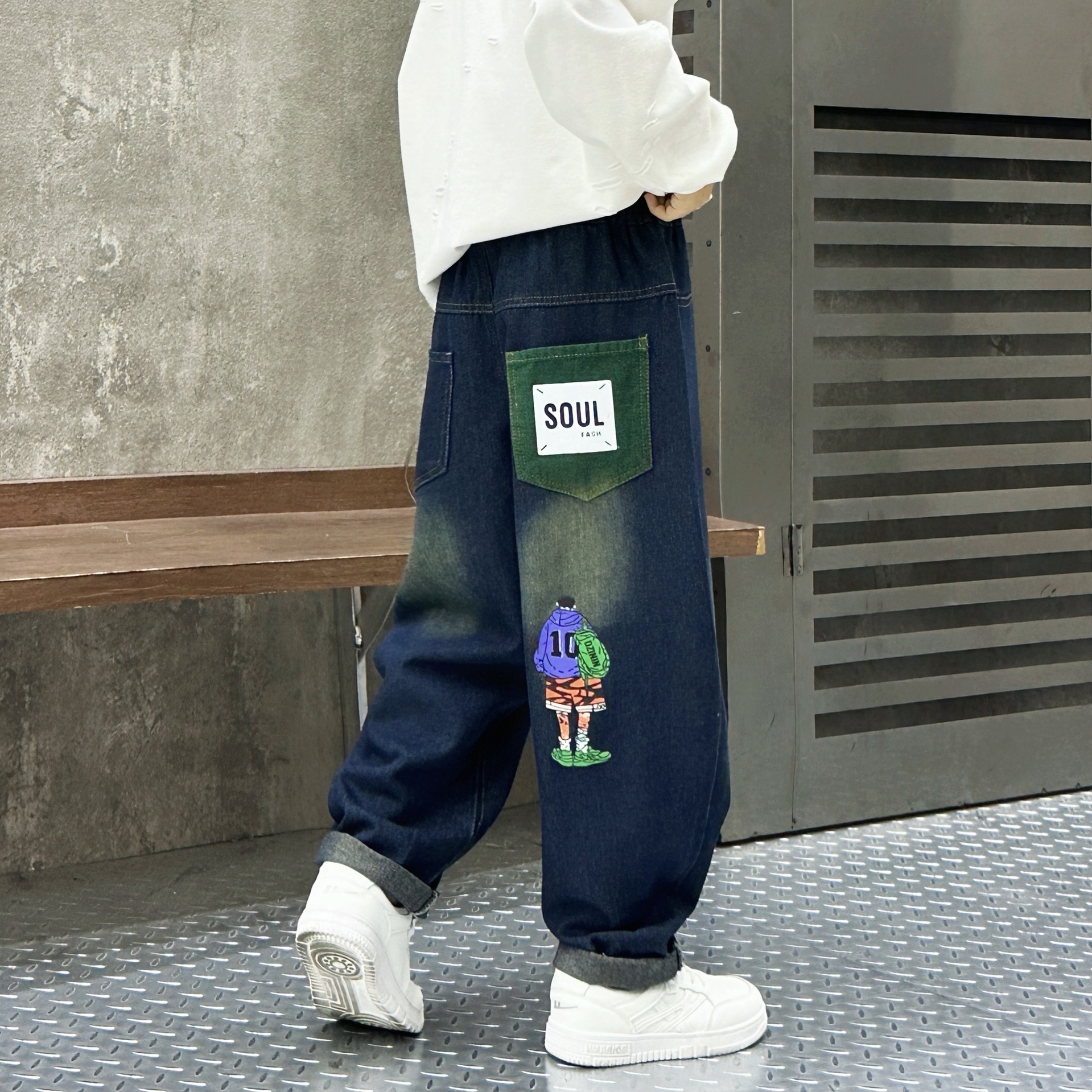 소년 청바지 봄 2025 봄 새로운 더피 잘 생긴 스타일 어린 소년 스트레이트 바지 봄과 가을 어린이 트렌디 한 바지